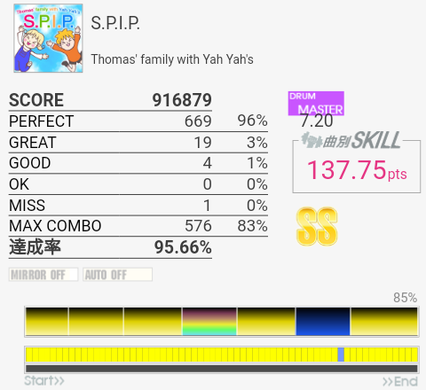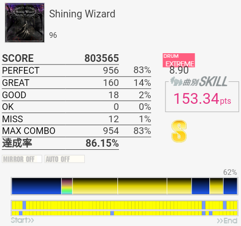 後半かなり崩れたけれど再びフルコン!何気に前作はSS取れていなかったのでうれしい。