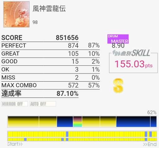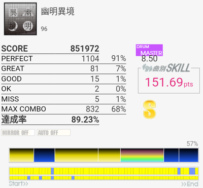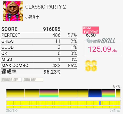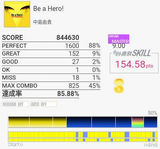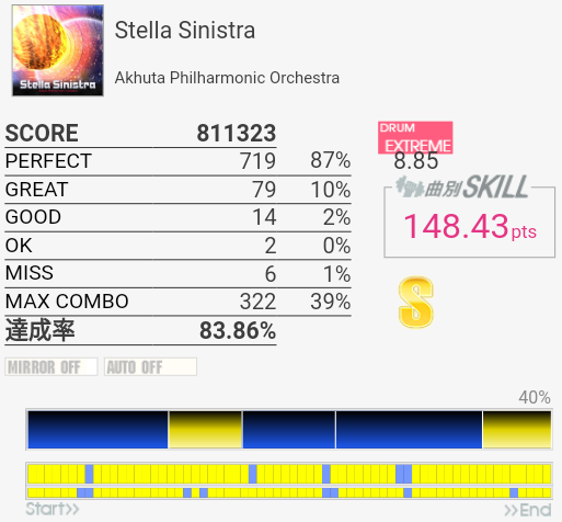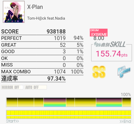SS取得。ほんと難しい。パフェ率でSSに持っていけたのでそれはそれでいいか。