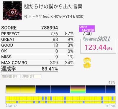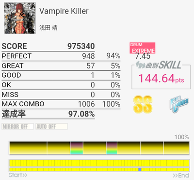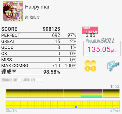 フルコン。個人的に苦手で繋ぎづらい譜面なのでこれは嬉しい。