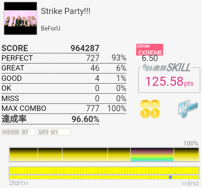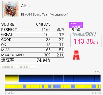 B判定→A判定。前半がやたら繋がった。最初の4フレーズ繋げばS出るのかな?なお二回目はB判定だった模様。