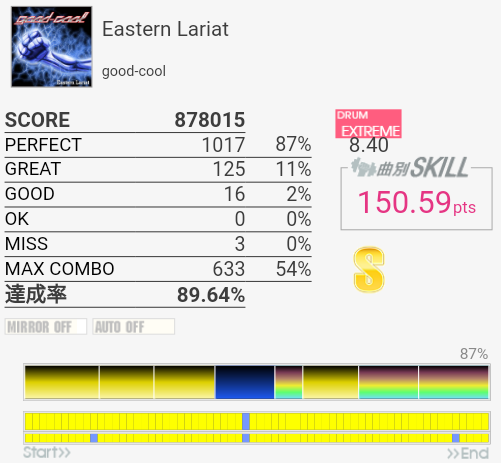 惜しかった。OKってことはパッドを叩けてはいるわけで、進歩はしている、と思いたい。