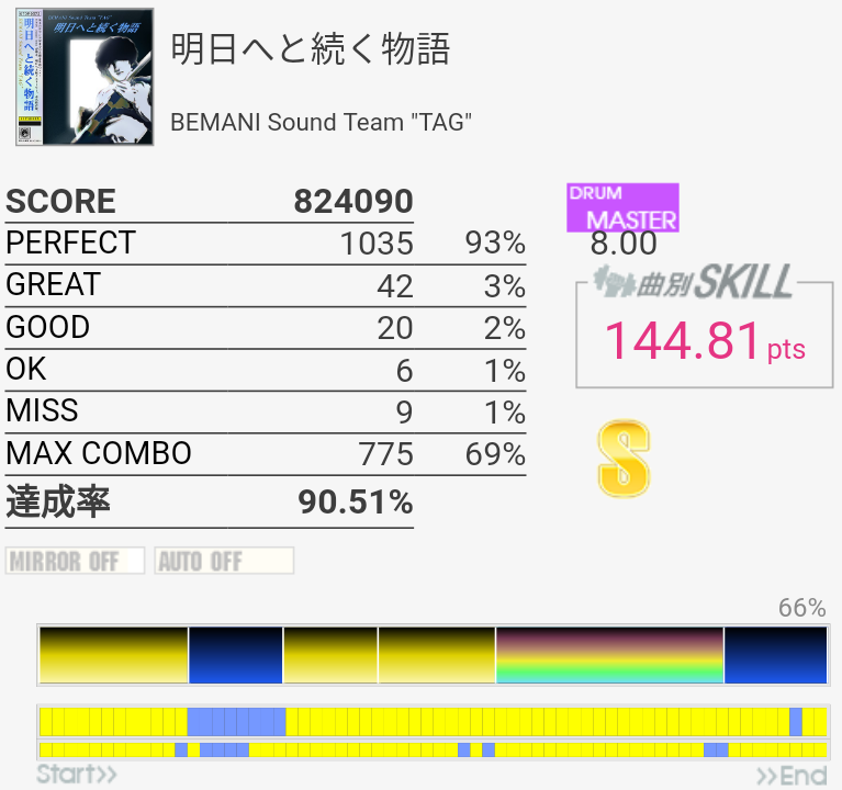 SS取得。イントロのSN×2→FT×2→SN+CYでしくじったものの、FT地帯の16分HT→LTがギリギリ繋がったのでよし。