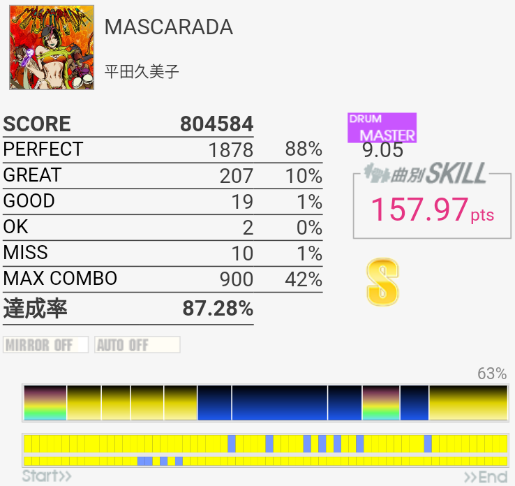 MASCARADAは間奏部分が肝ですかねー、ダブルを使う部分が多くてなかなか。Long曲は対象には入れづらいですよね。