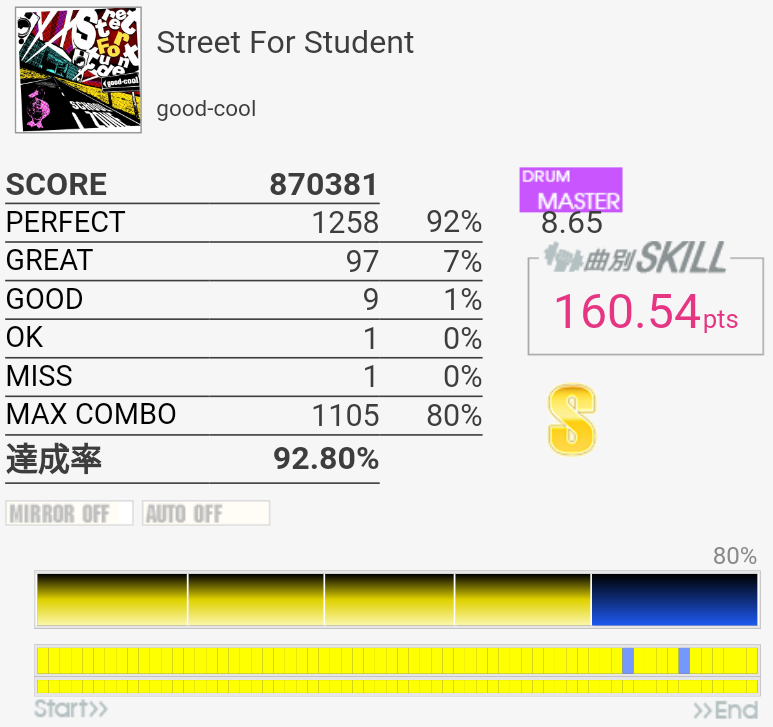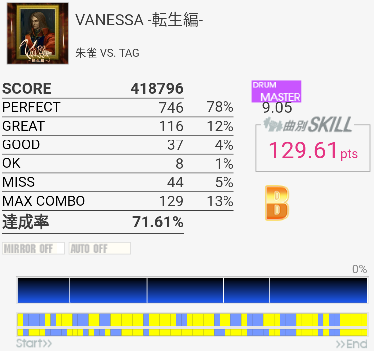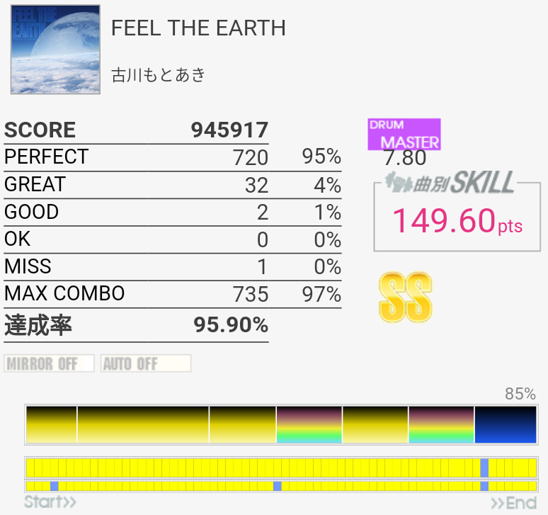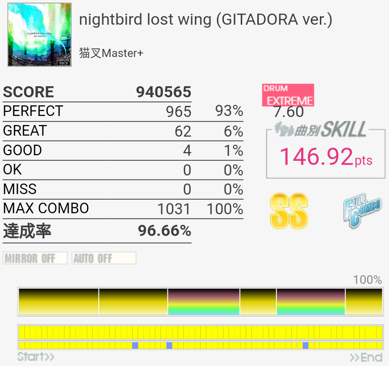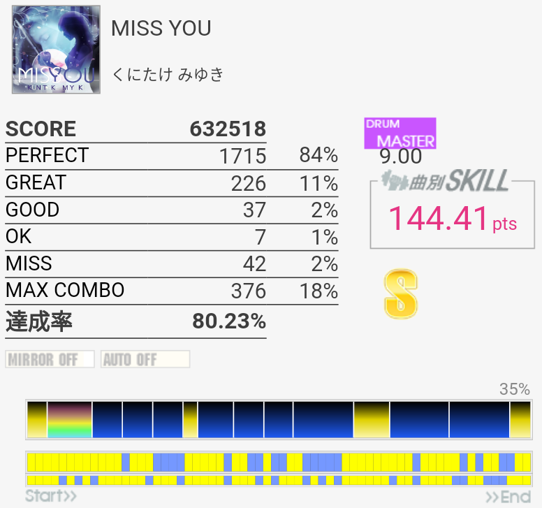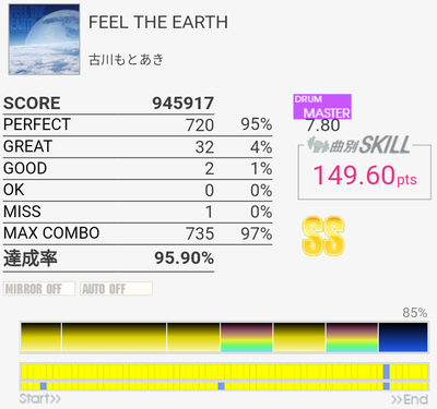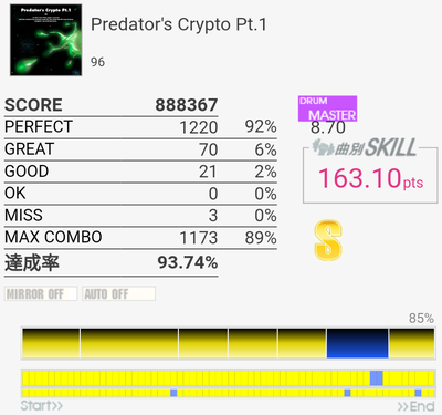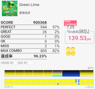 対象入り。シンバル振られるところは難しいな。Green Limeくらいのパフェ率が出せればなあ。