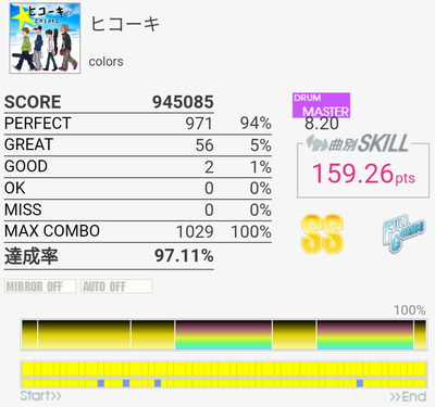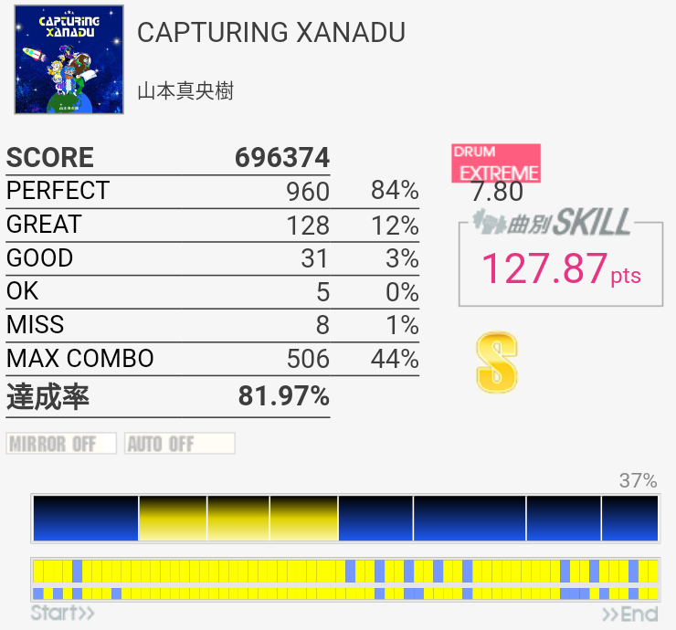 なんだかんだ毎回SKILLを5くらいずつ上げられているけれど、そろそろ本当に厳しい。今日プレイしていていきなり手首を軽く動かせるような感覚になって、その感覚を両手とも掴めればもっと叩ける感じがした。残念ながらすぐに元通りになってしまったけれど。