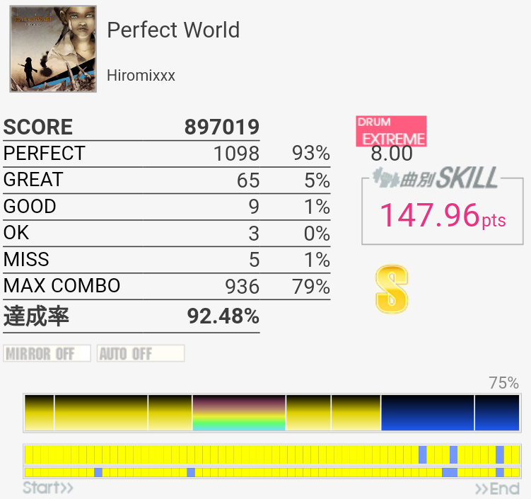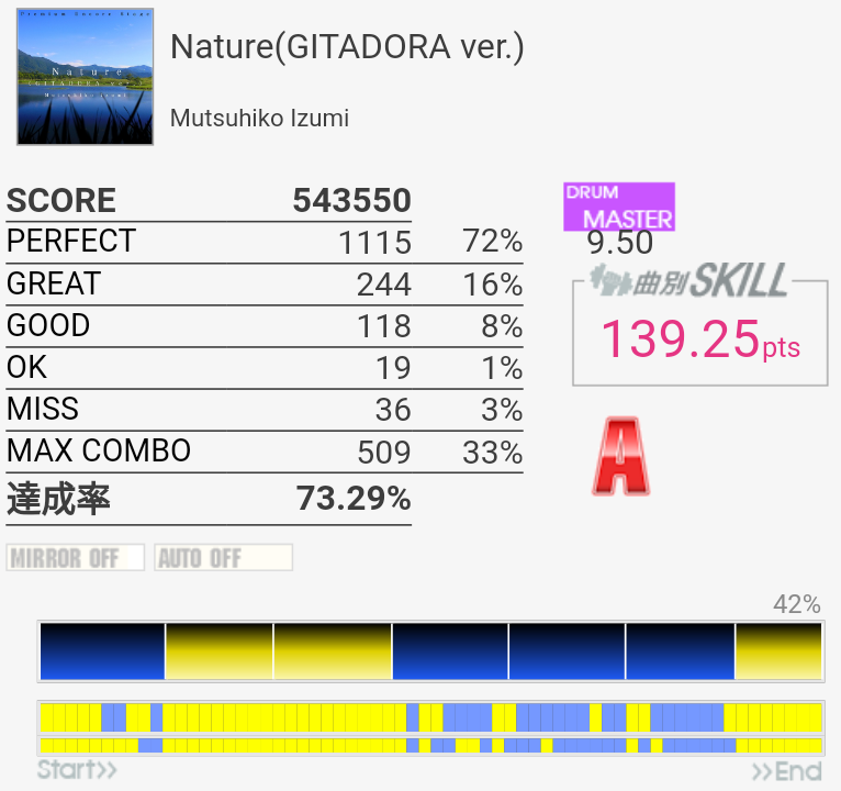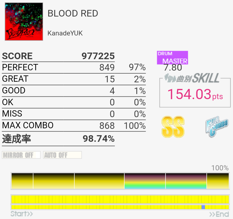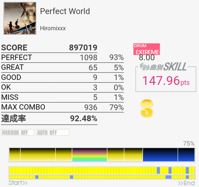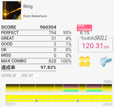 MASの足が全然踏めないのでこっちはどうかと思ってやってみたけれどフルコンしないとダメで、終盤のタムがそのままなので無理ぽ。おとなしくMASを練習しよう。