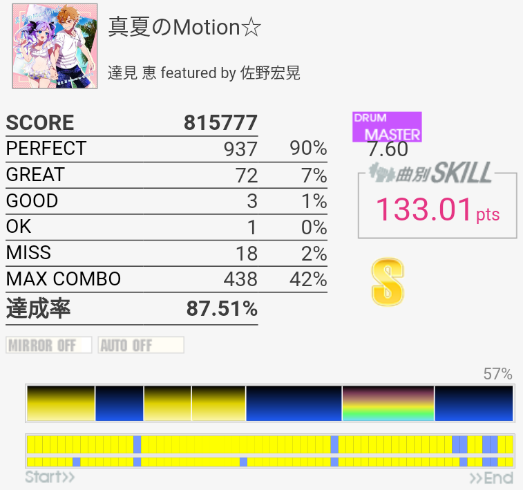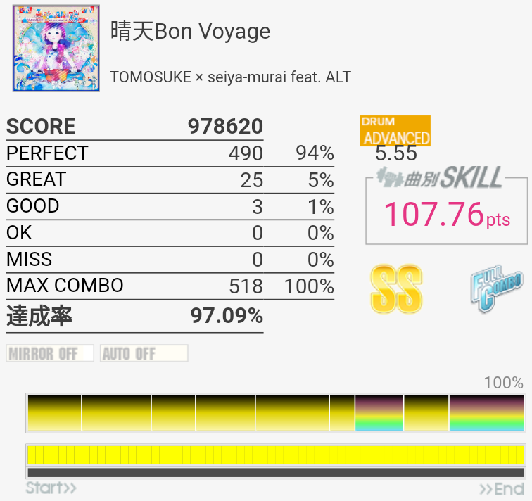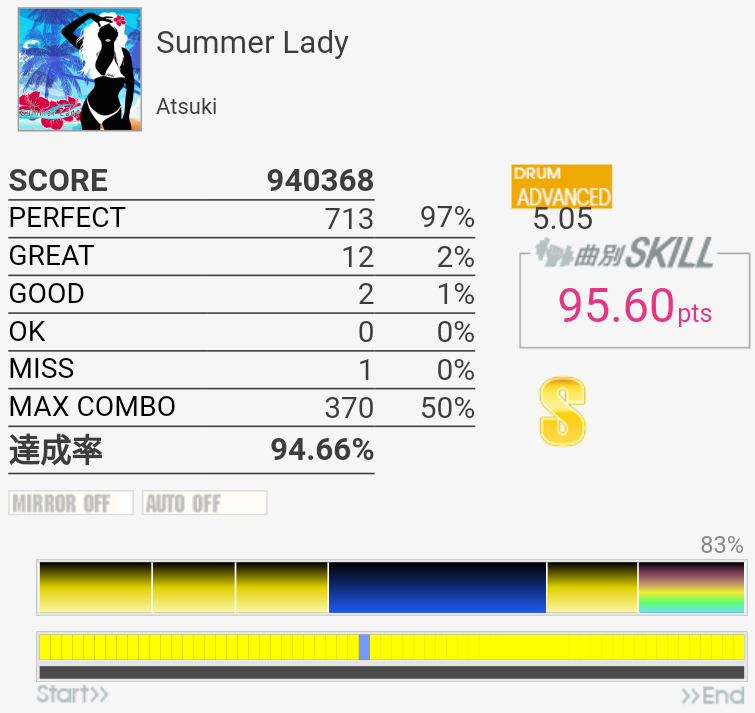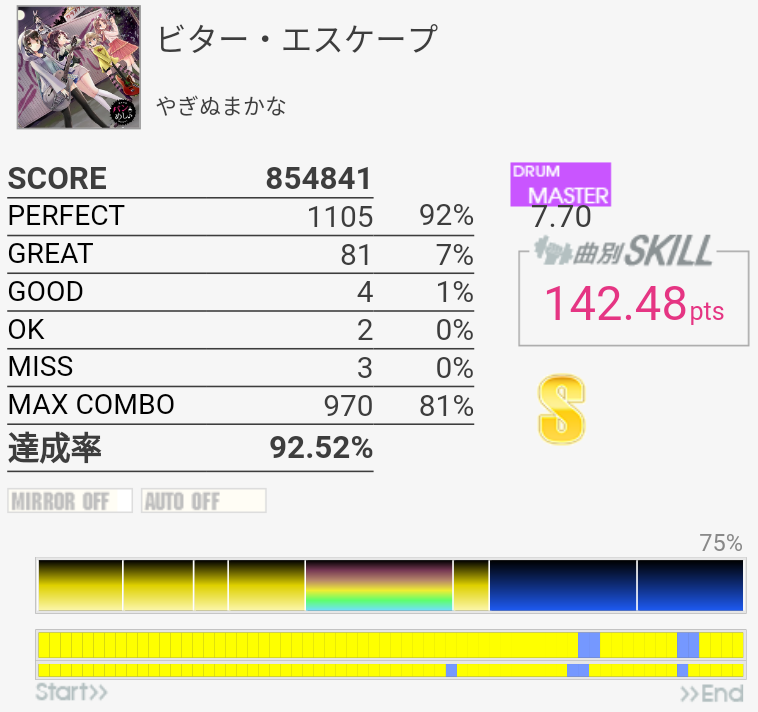上に同じ。オープンでやったけれど反応が鈍い。ADV譜面とかMASに対するEXT譜面は思わぬ抜き方をしているのがちょくちょくあるのでもっとプレイするべきかも。