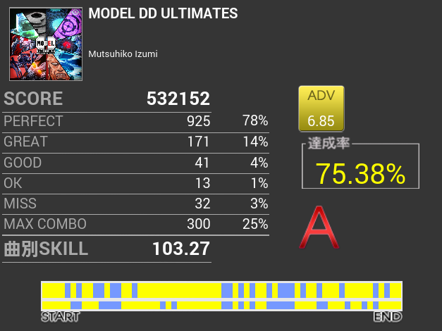 ADVもやったら76.16%で実機より高達成率という。判定甘いとはいえ凹む。