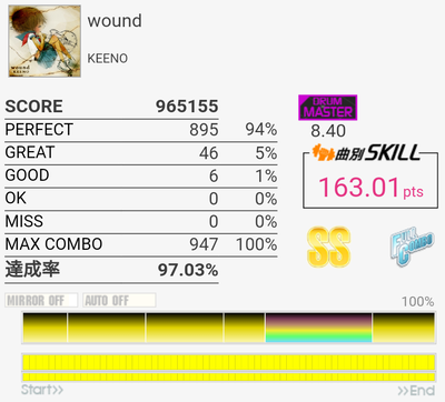 ぎりぎりフルコン。SNを多めに叩いていた気がする。