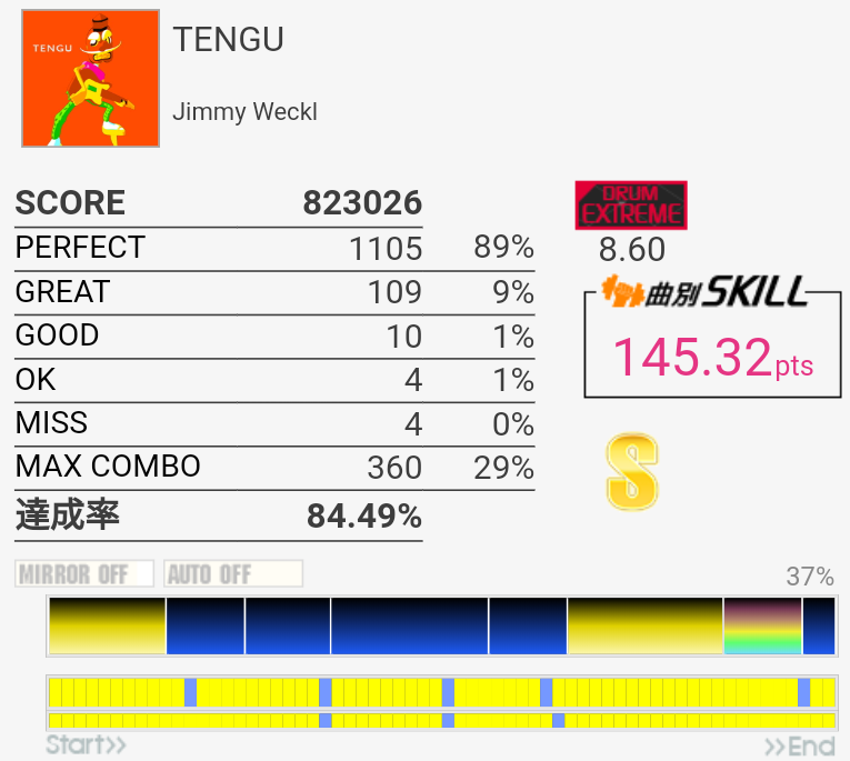 久々にフルコン。パフェ率もちょっと崩れたとはいえこんなものか。