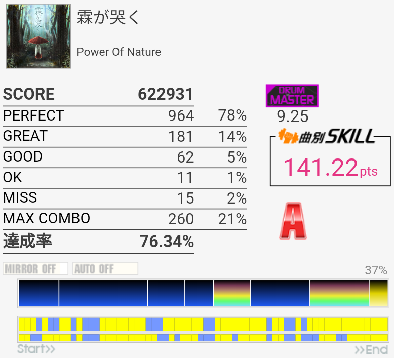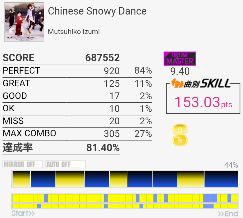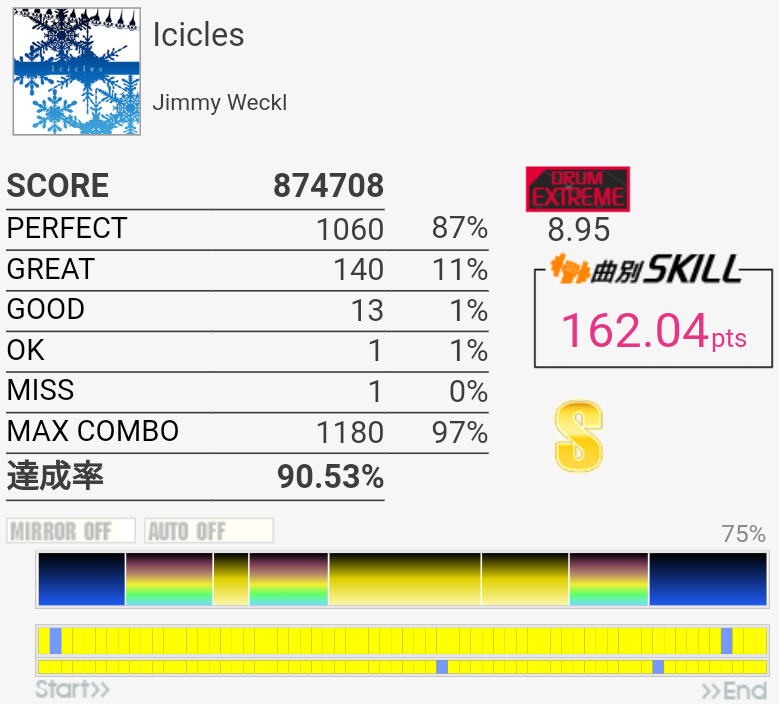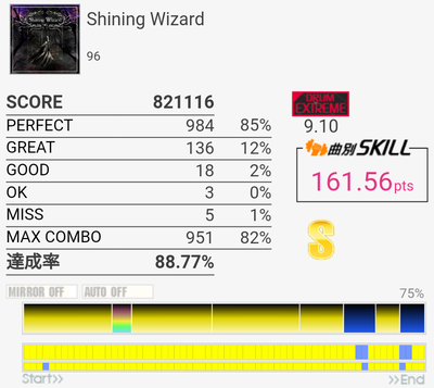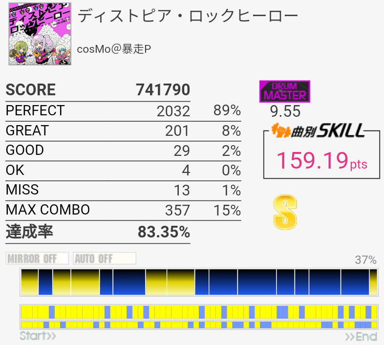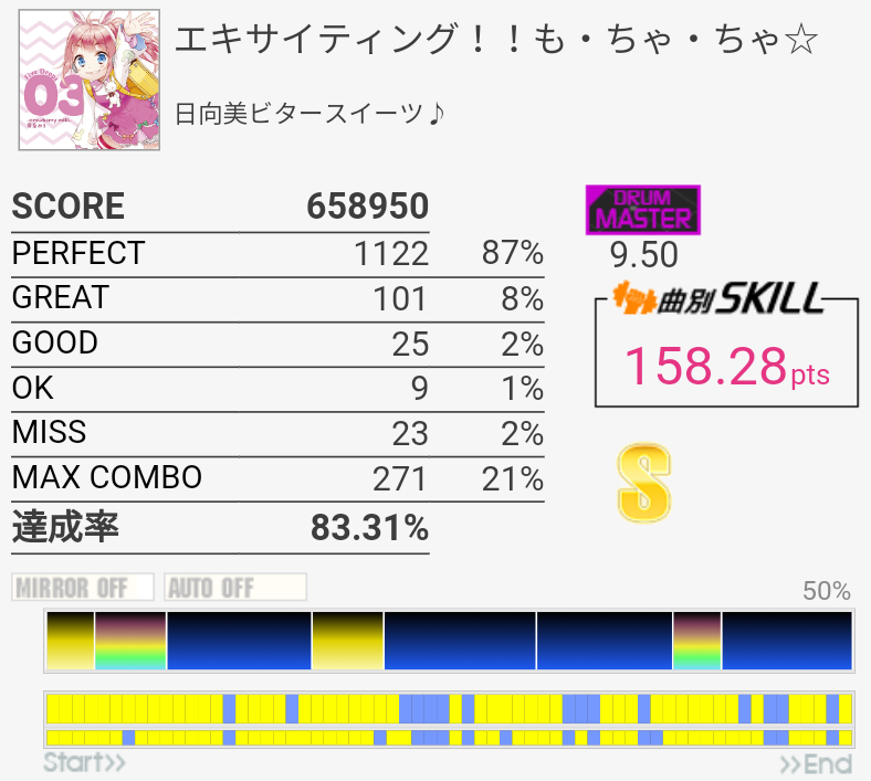 なんかLP踏んでるところが繋がってちょっと伸びた。でもS判定は取れない。