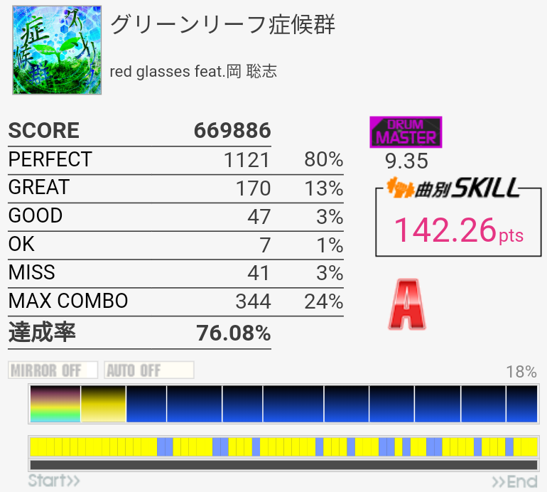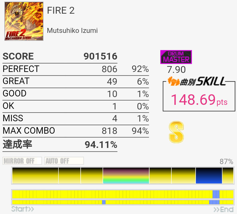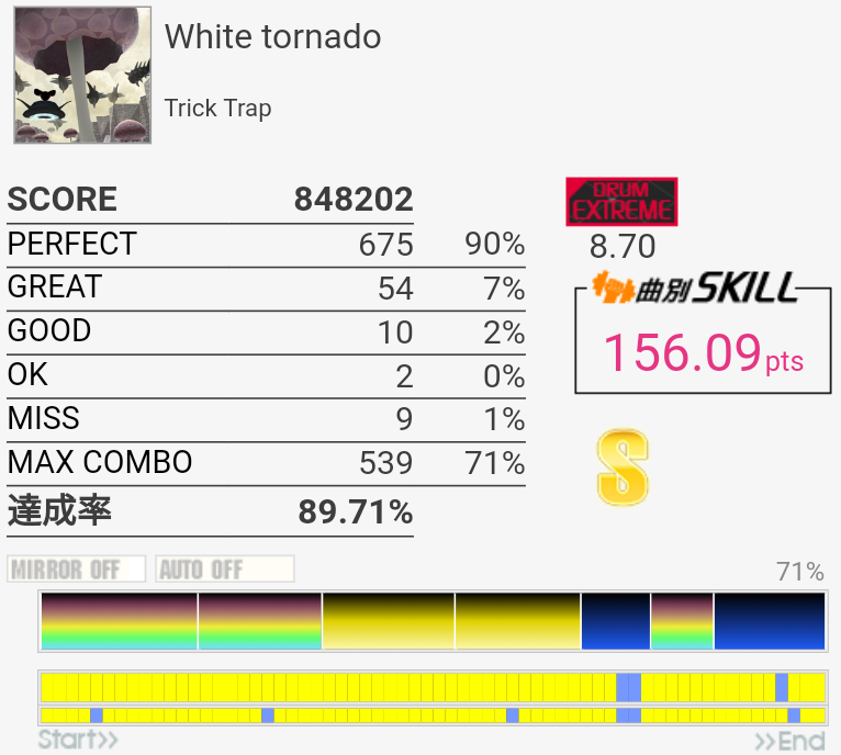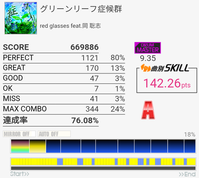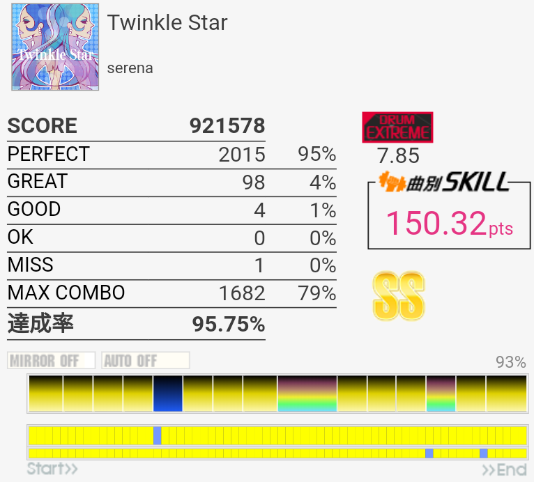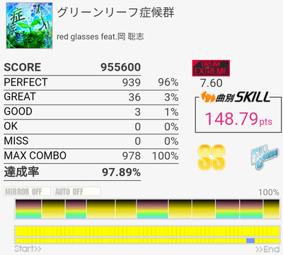 SS取得。譜面忘れててHH×2にビビった。