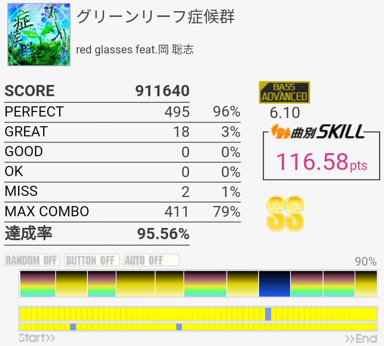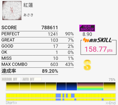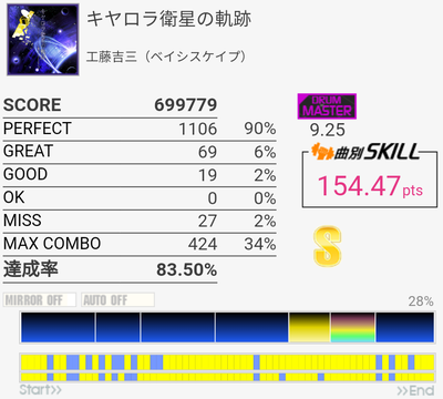 SS取得。ラストは何回やっても覚えなかった。HHのパフェ率がいつもよりはよかったからもったいないな。