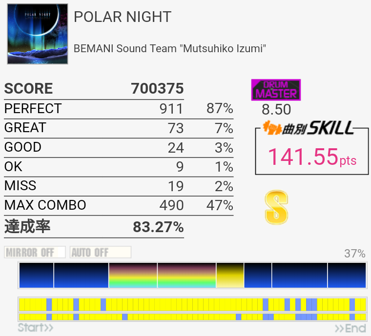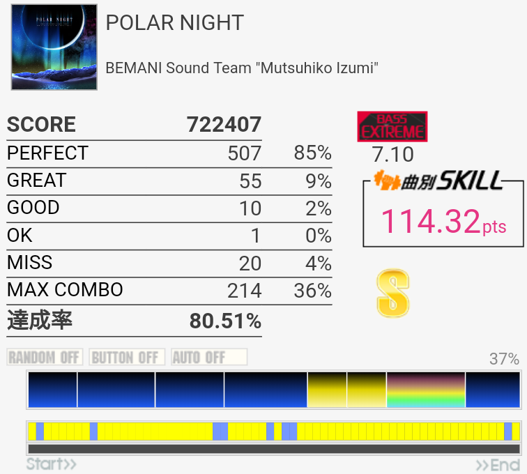 繋がったけれどパフェ率が低すぎる。普通のCY刻みでGOODまでズレるあたりなんかおかしいよな。