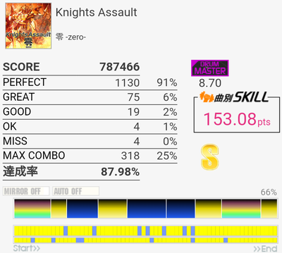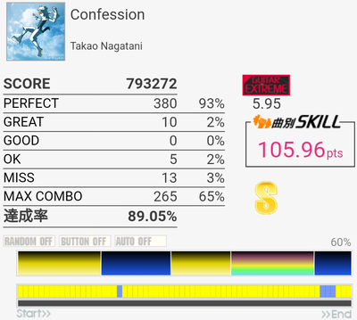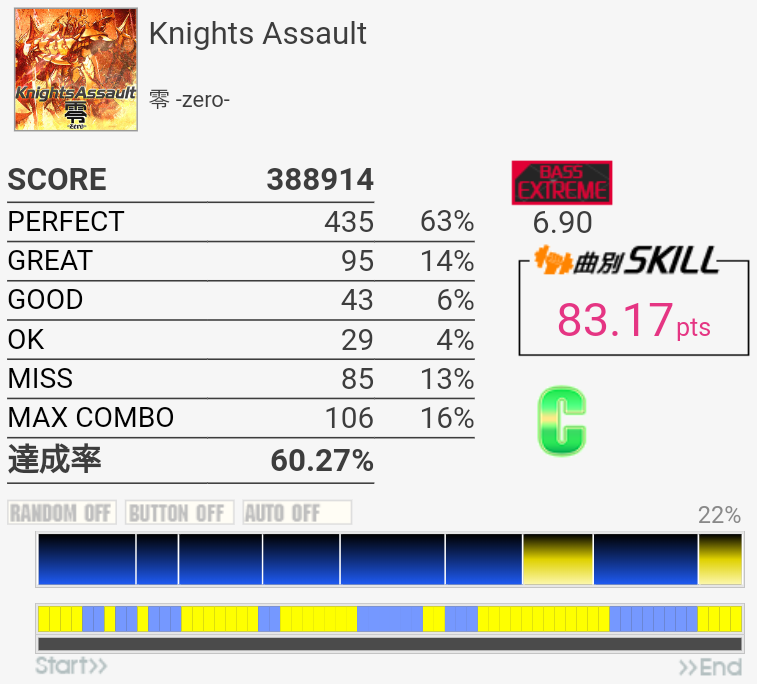 昨日の今日でやってみた。やっぱりミスるな。B側からG絡みで戻るときにミスしやすい気がする。この感じで繋げば130点取れるな。