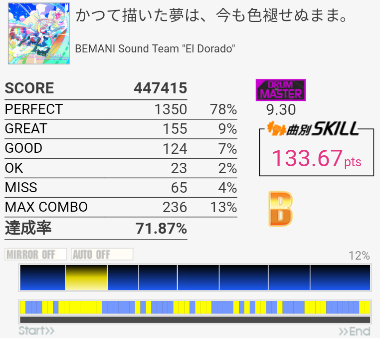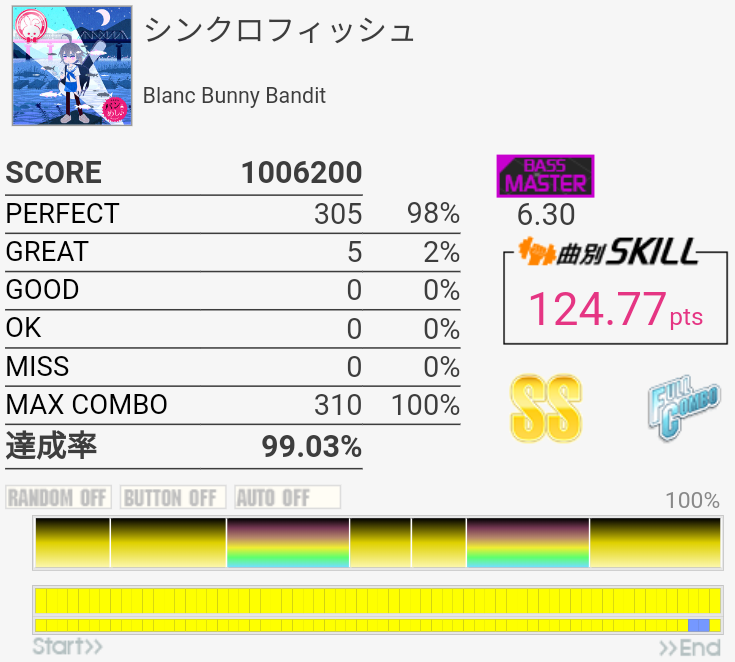 16分が合うかどうかなので6台後半の†闇鍋☆ROCK† (EXT-B)とかの方が難しい。6フレーズ目終わりの2個ずつの移動だけ一回も繋がらなかった。