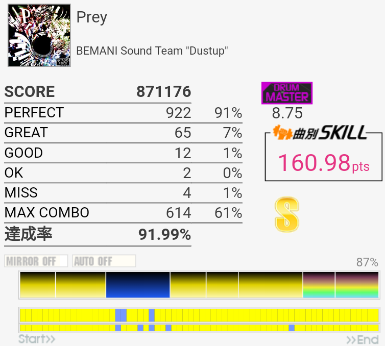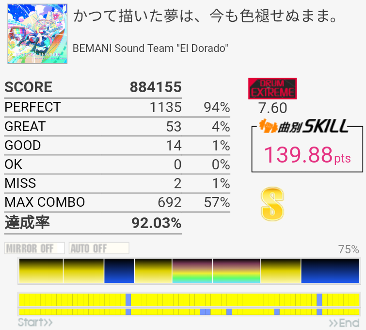 ギタフリで初エクセレント。PERFECT出やすいのかな?ギタフリに関しては8分はちゃんとPERFECTで取れるようになりたいな。