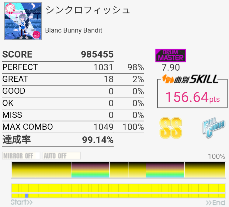 新曲が逆詐称だったのでHot枠で伸ばせた。Hot枠は今ある曲で50くらい上げたいな。現時点だとギター側やらないと厳しそう。