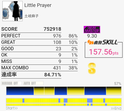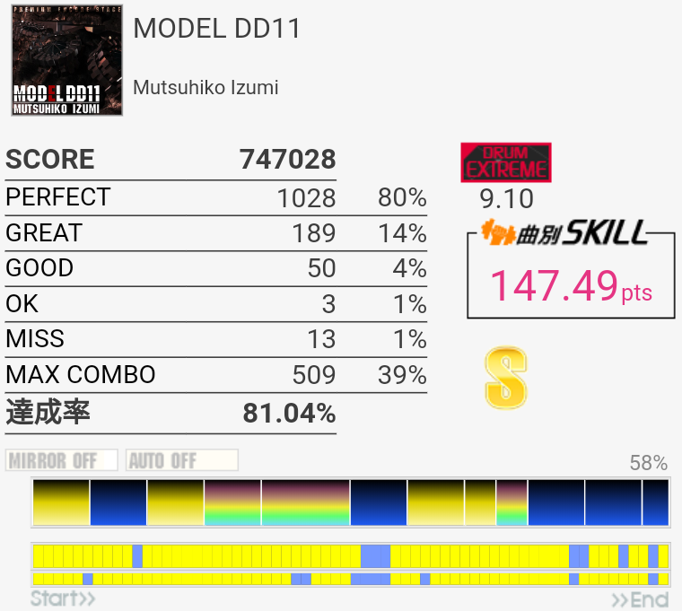 もうちょいって感じ。LT左手、SN右手でSNを打ち損じたり。というかこのプレイに関しては5フレーズ目の休憩地帯でゲシュタルト崩壊しなければ対象入ってただろ!