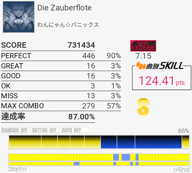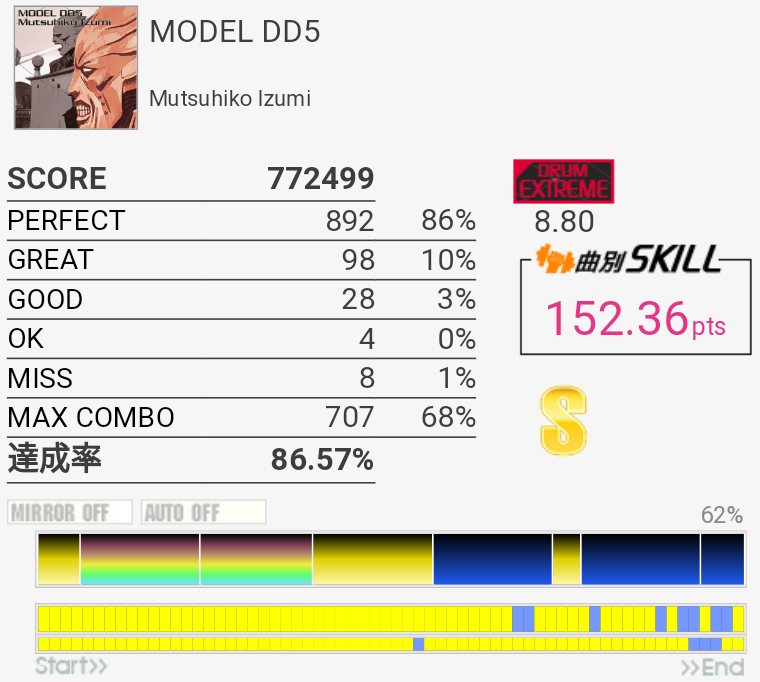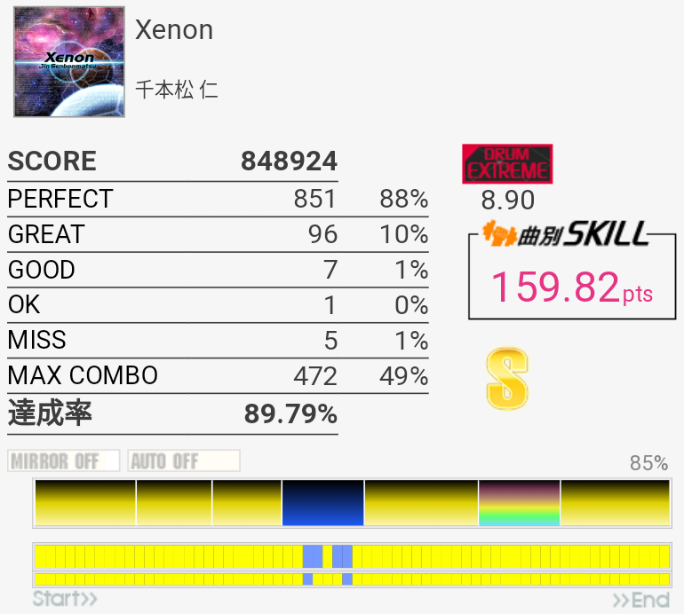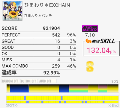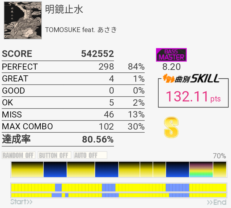 SS取得。運指ミス。全体的に中+薬→人+薬→中→人+薬みたいな運指(イメージ)がいつもより取れていた。