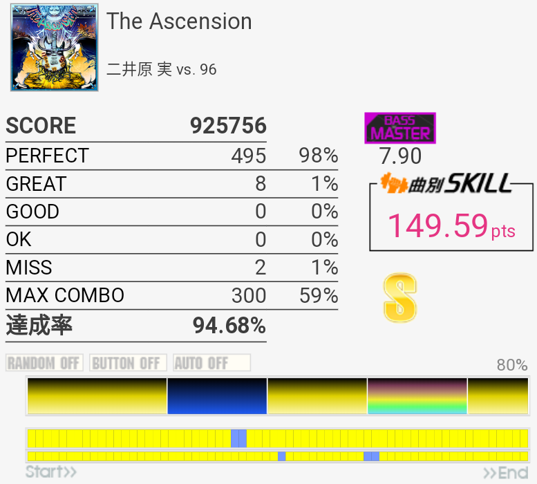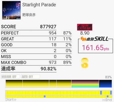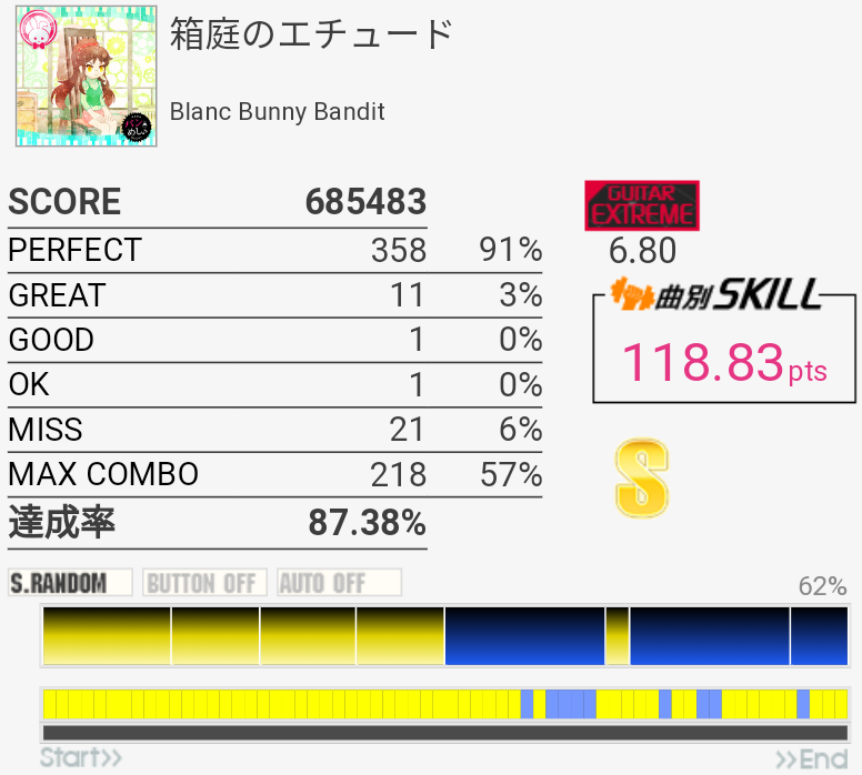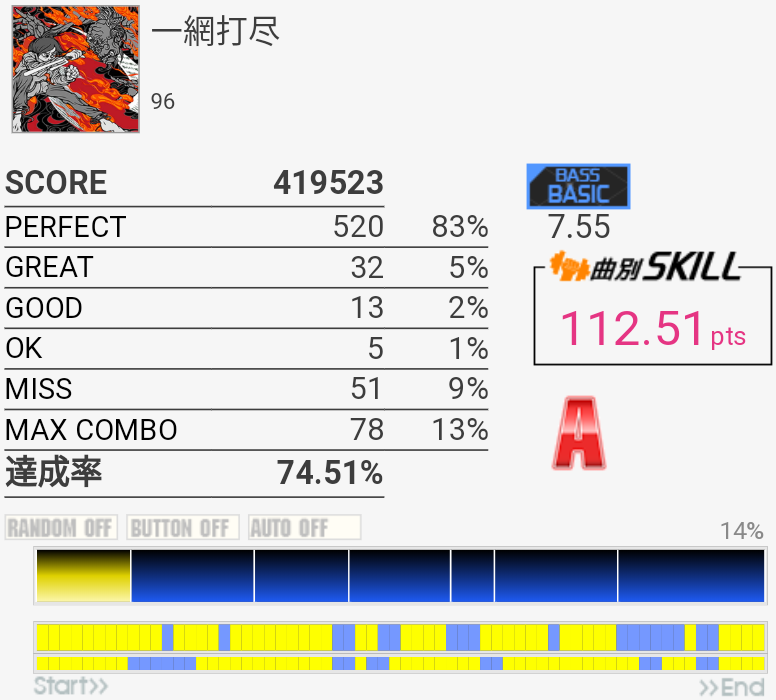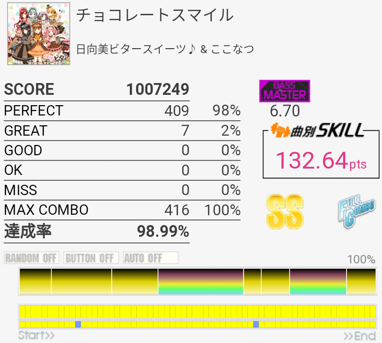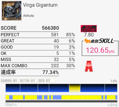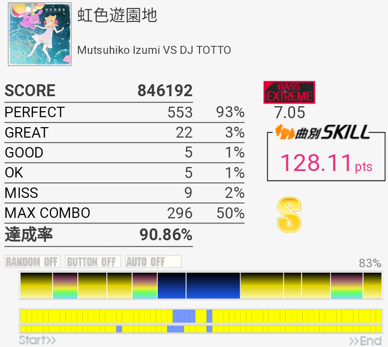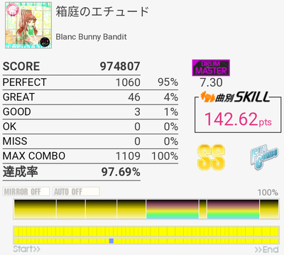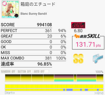 対象トップに。ちゃんとB押さえたよ!?イントロの三連符がなんかできるようになってたのでまあいいんじゃない。