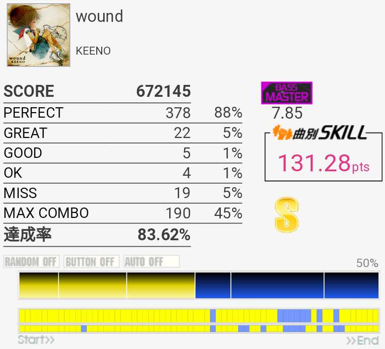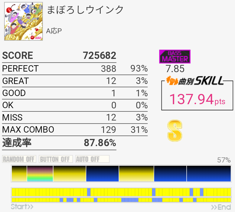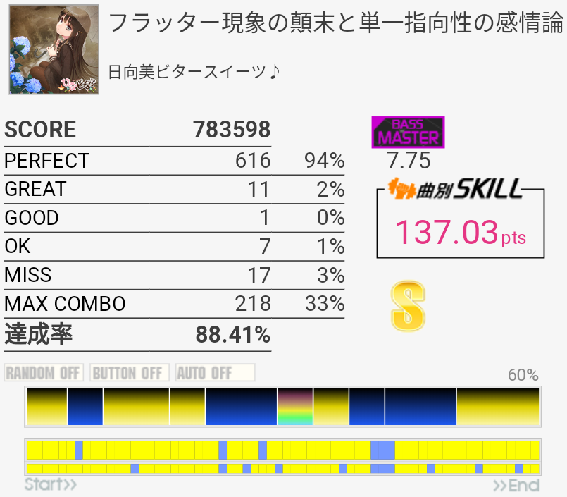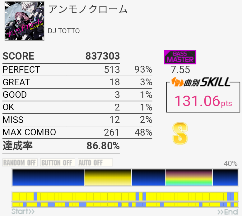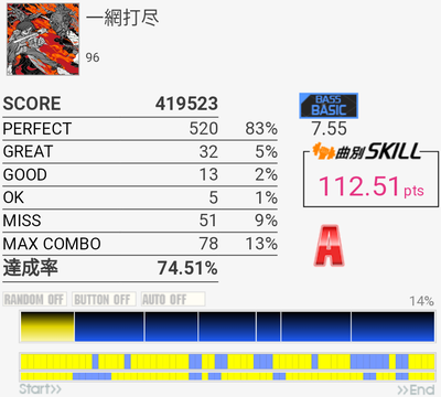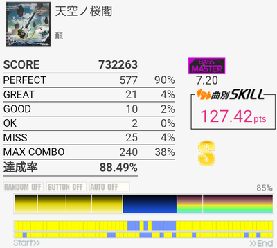 難所というものがなかった。5.50くらい。最初スパランかけっぱなしでやっちゃったけれどそれでもサビ以外あんまり問題なかった↓