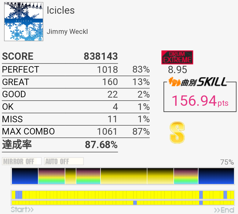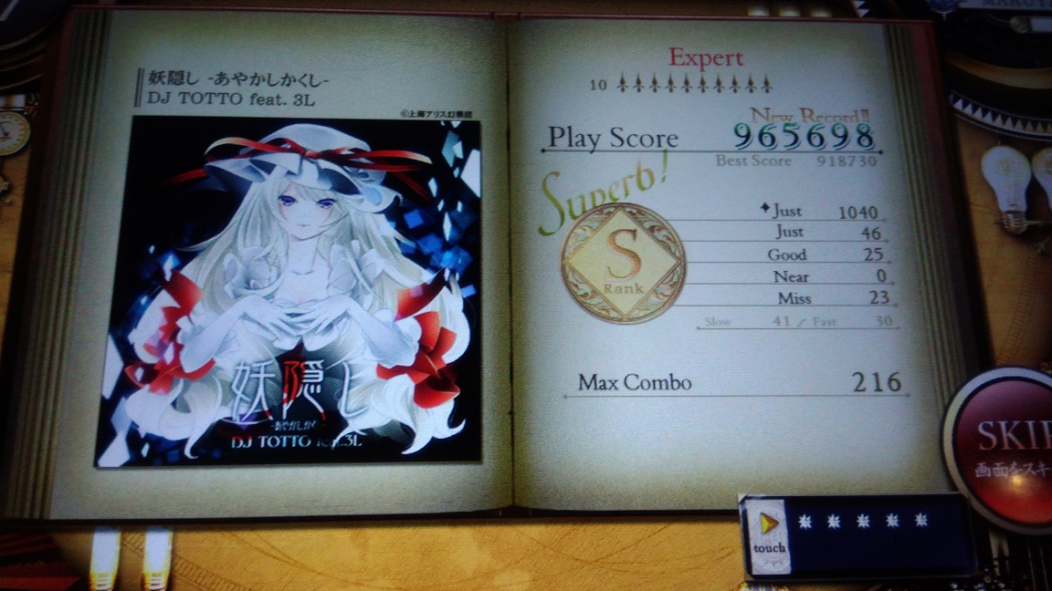 それはそうと好きな曲でS取れた。スコア計算式とか調べてないけれどS取れたらひとまず合格でいいのだろうか。究極的にはフルコンとか理論値だけれど、一般的に。