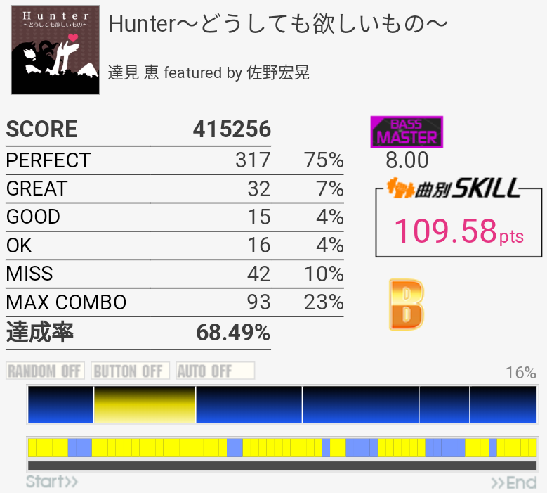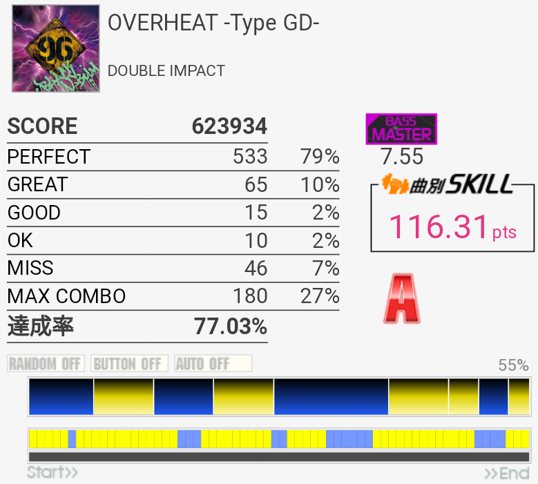 今日は普通の刻みですらGREAT出まくりだしBPも合わないしでダメだった。何がいけないのやら。