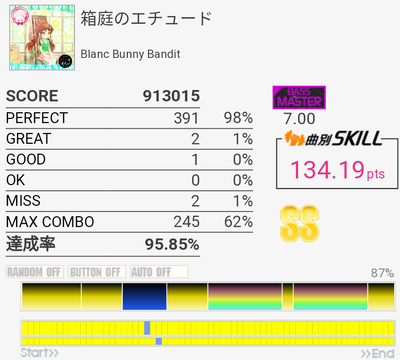 S取得。凡ミスでフレーズ落としたのでEXT-B超えの140点は狙えそう。サビの運指も要所を押さえればって感じかなあ。