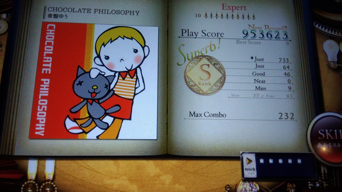 CHOCOLATE PHILOSOPHY。なんかグリッサンドっぽく誤魔化してたらS取れたけれどそれでいいのか。