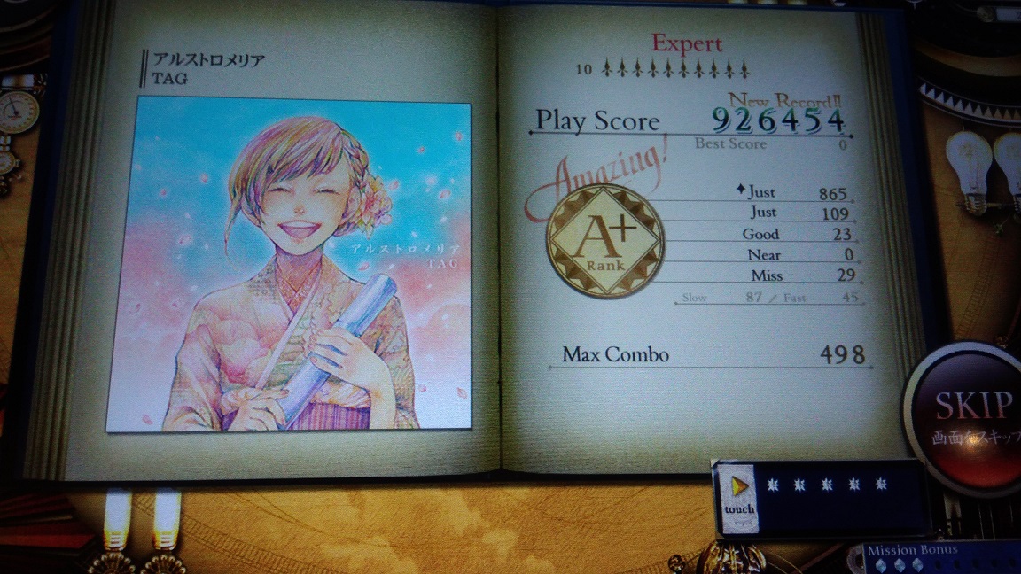 100秒(Normal)Pianist。ExpertはLv12だし怖くて手を出せないなあ。