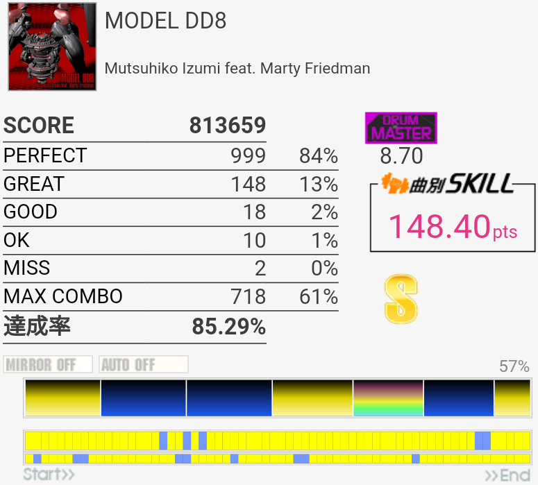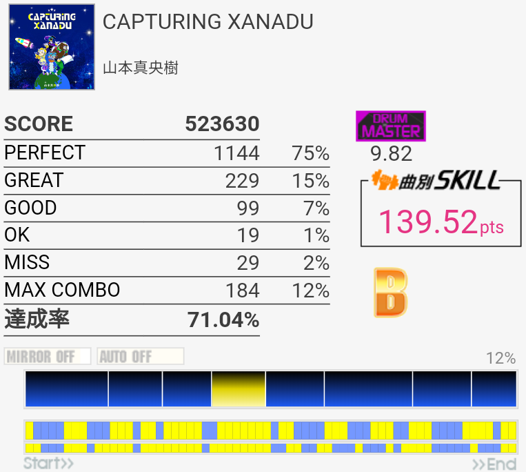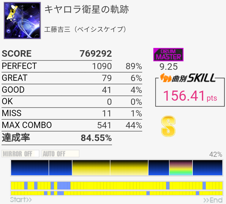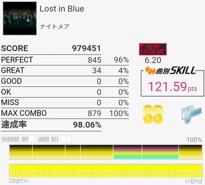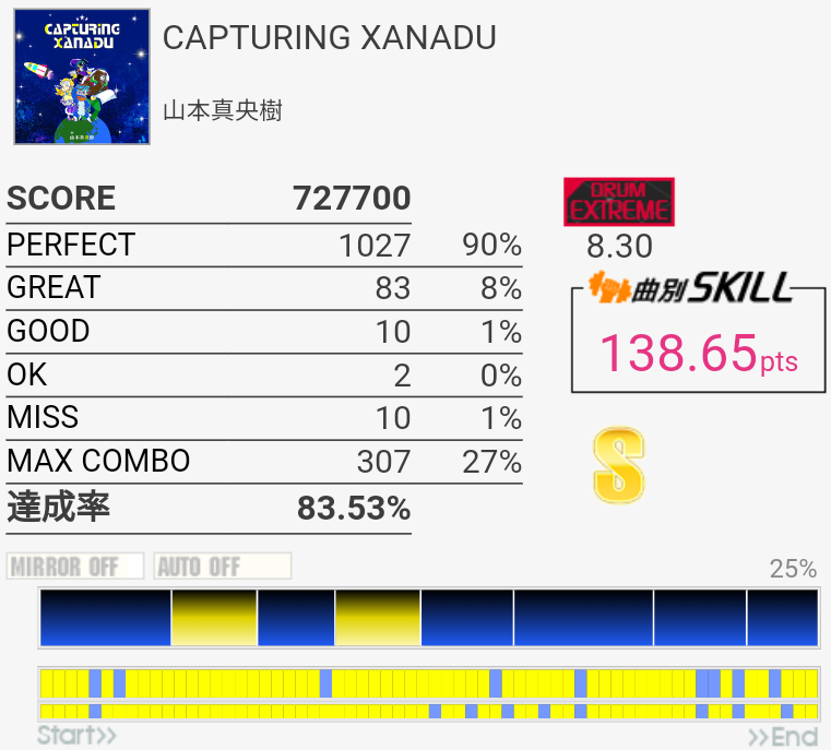 なんか前作B判定からS出た。LPがフレーズでハマったのと、タムの処理が一応上達しているのかな。