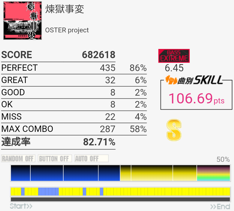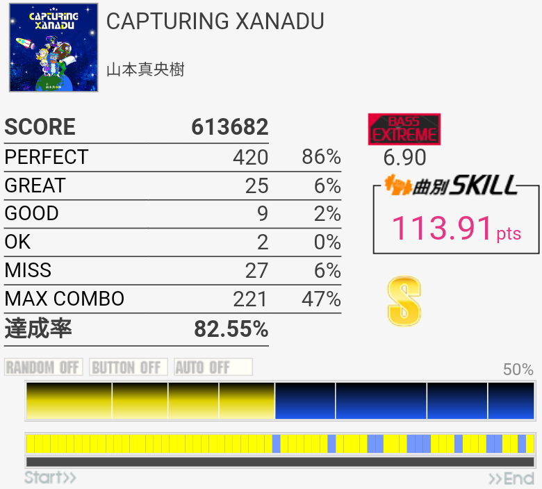 イントロのオルタがパフェ率100%で繋がったのでびっくりした。