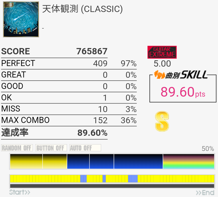 B判定→A判定。8分LPのパフェ率が上がった分だと思う。これもまだ挑戦圏内にない……。