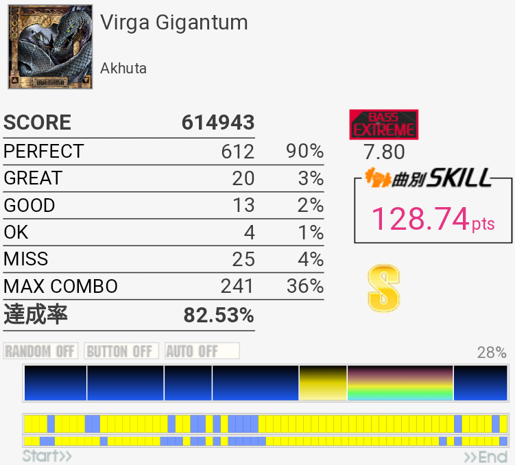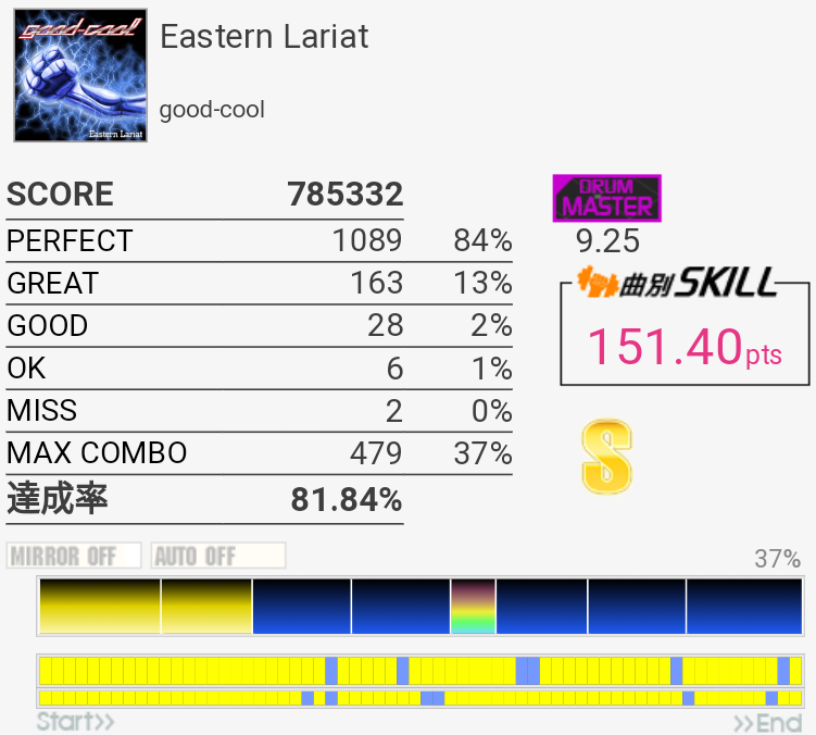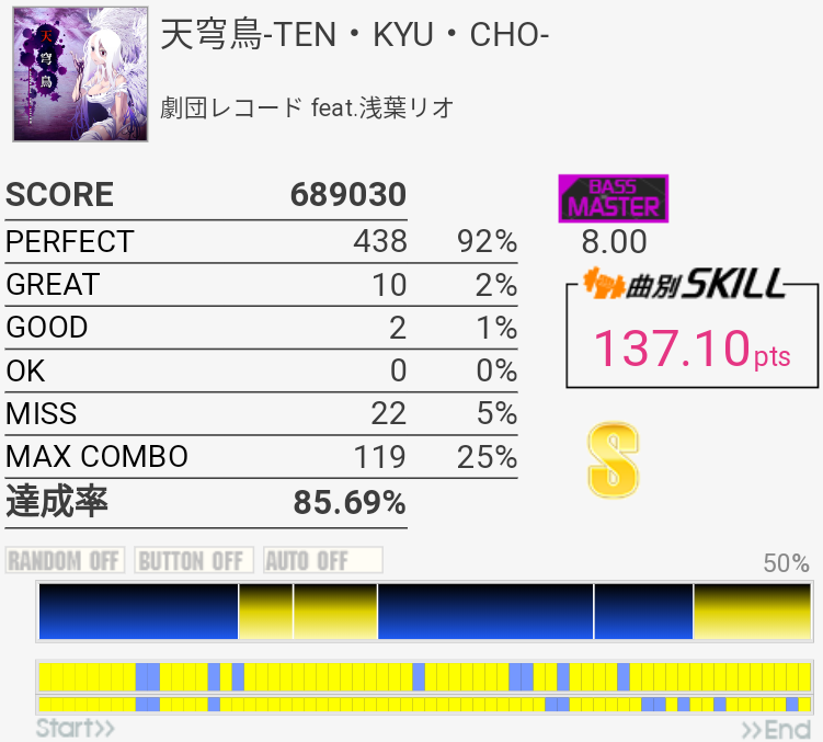 ゴリ押し譜面ってことだけ覚えていて譜面自体は全く覚えていなかったのだけれど、意外と叩けた。