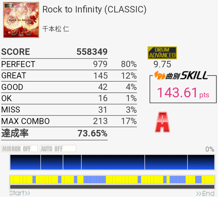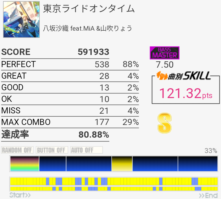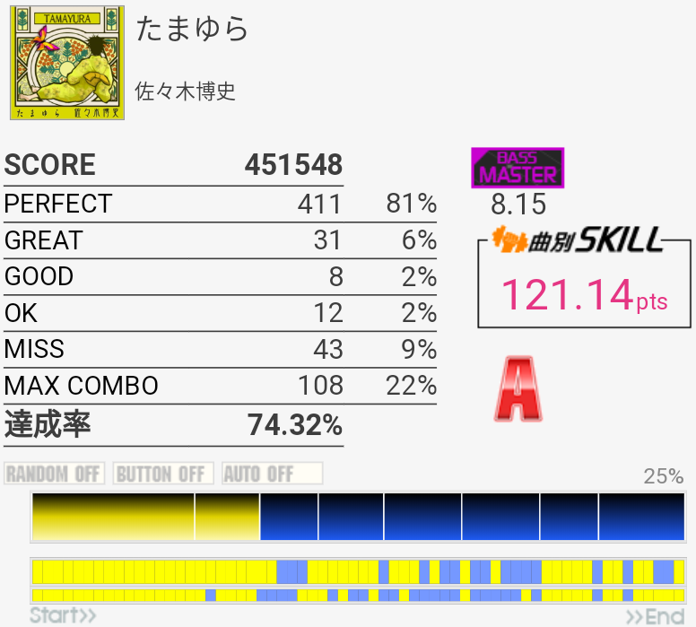 B判定→A判定。オルタの練習に良さそうな感じだなー。右手を無意識に動かせるようにしたい。