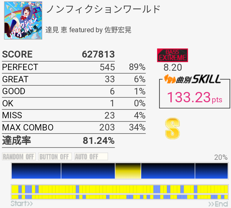 やっぱり同じ譜面ばかり選びがちなので色んな譜面をやらなきゃなー。難度値フォルダでランセレするとか。