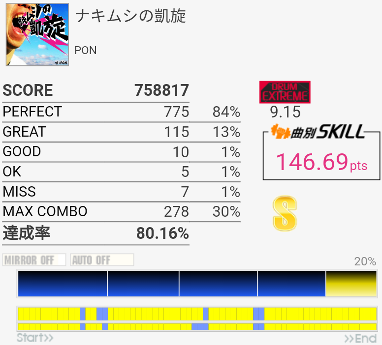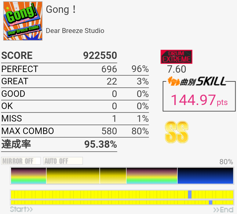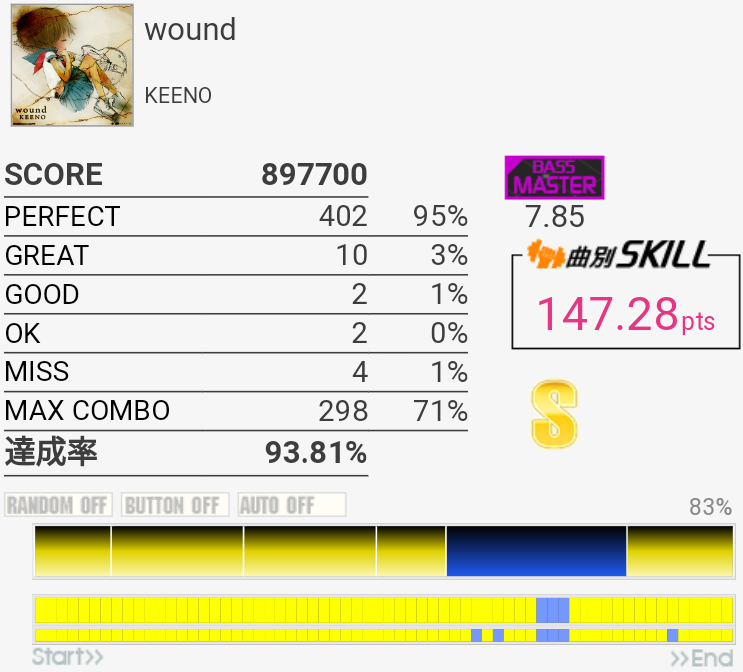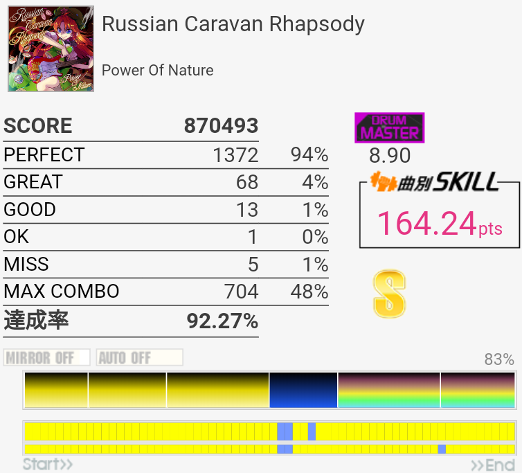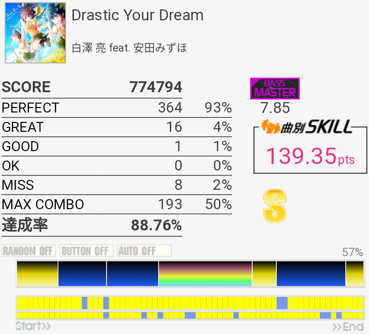 SS取得。HH×5くらいのところをちゃんと叩けなかった。
