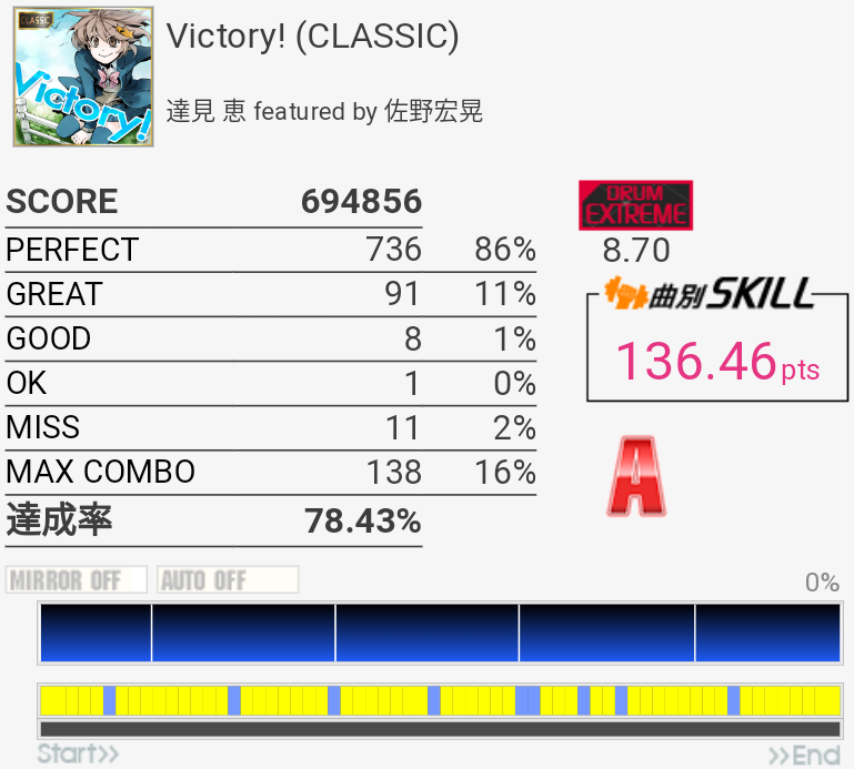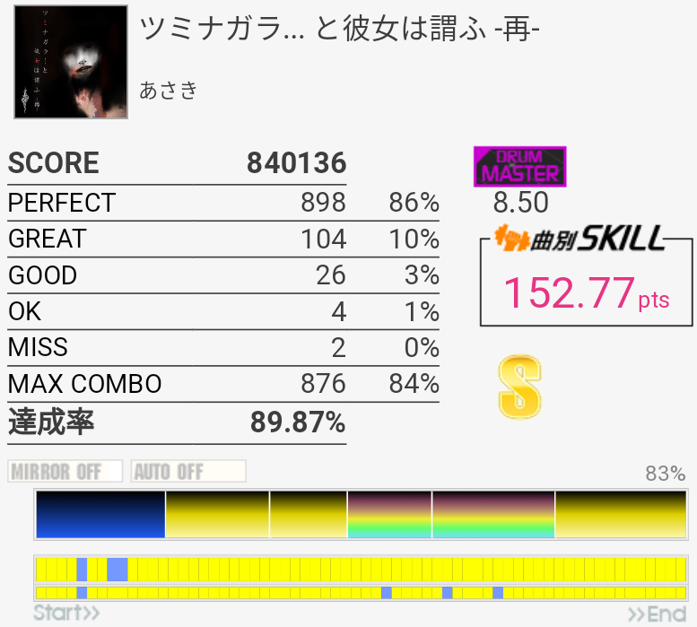 道中も別に安定してないからね。最終フレーズはどうやら叩けそう。