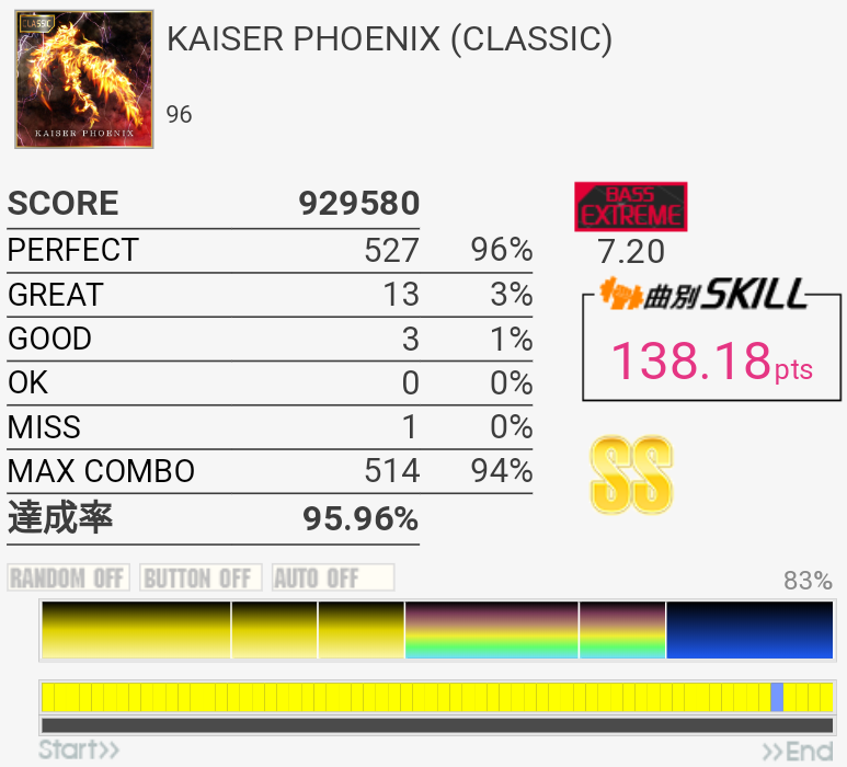 CLASSIC譜面にしては珍しくかなりの逆詐称。6台前半じゃないかな。最終フレーズの16分が全部直線なのが有情。ピックが滑って切ってしまった。