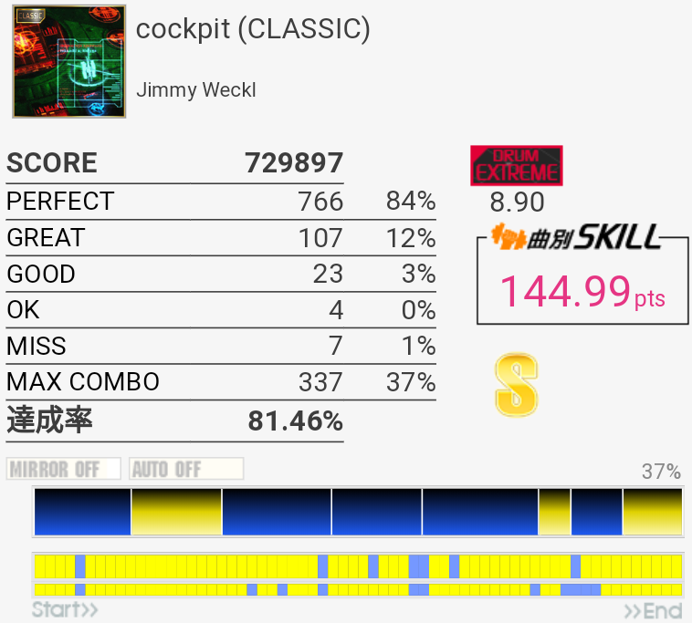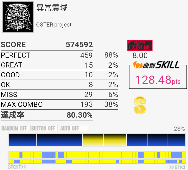B判定→A判定。この曲手もだけどBPがヤバいな(今更)