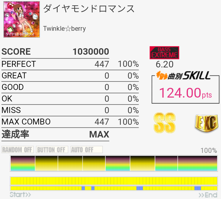 フレーズコンボチャレンジのためにやったらエクセレント。たぶんPERFECTが出やすいBPM。