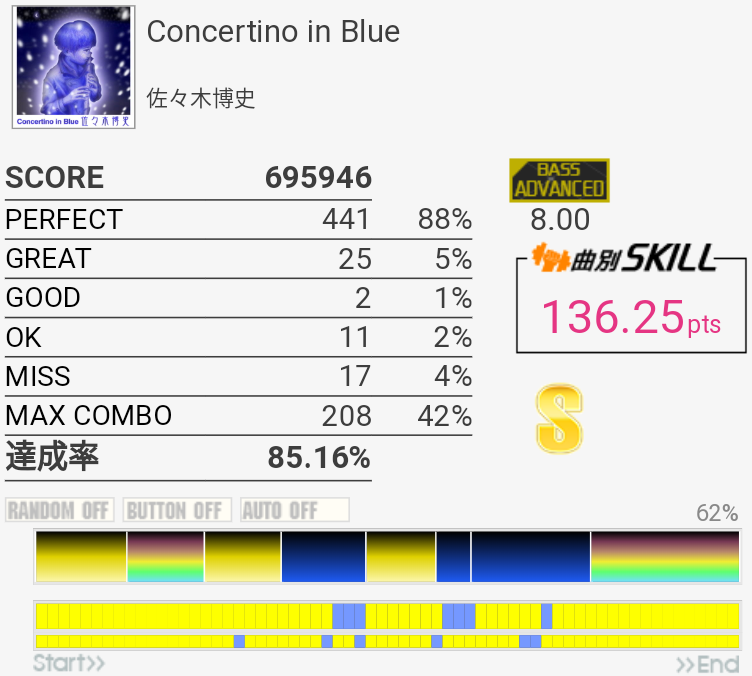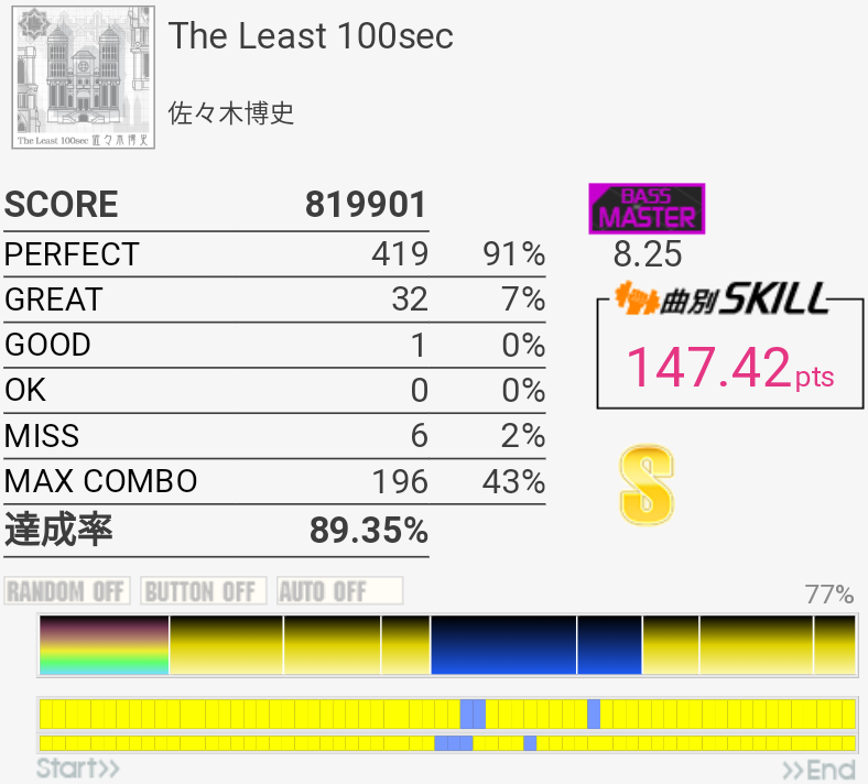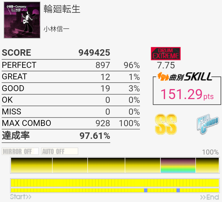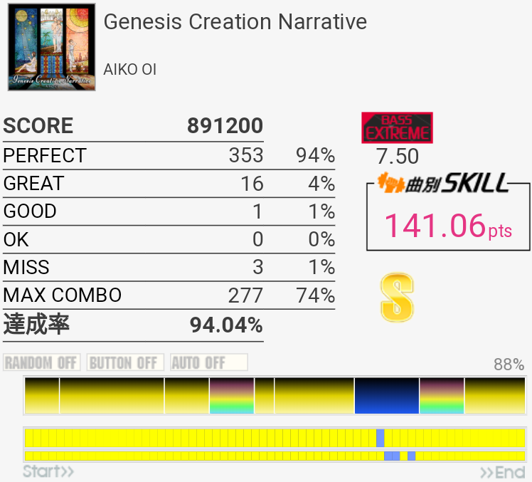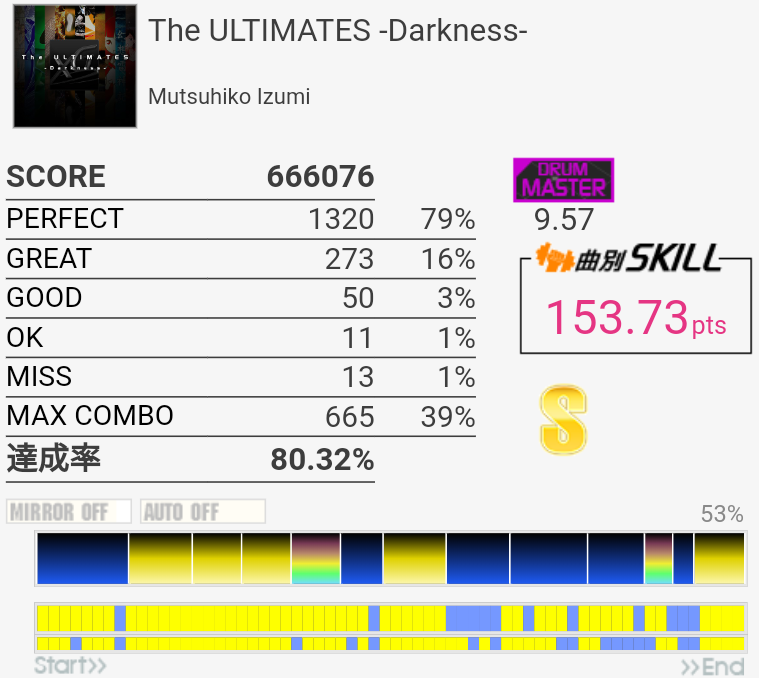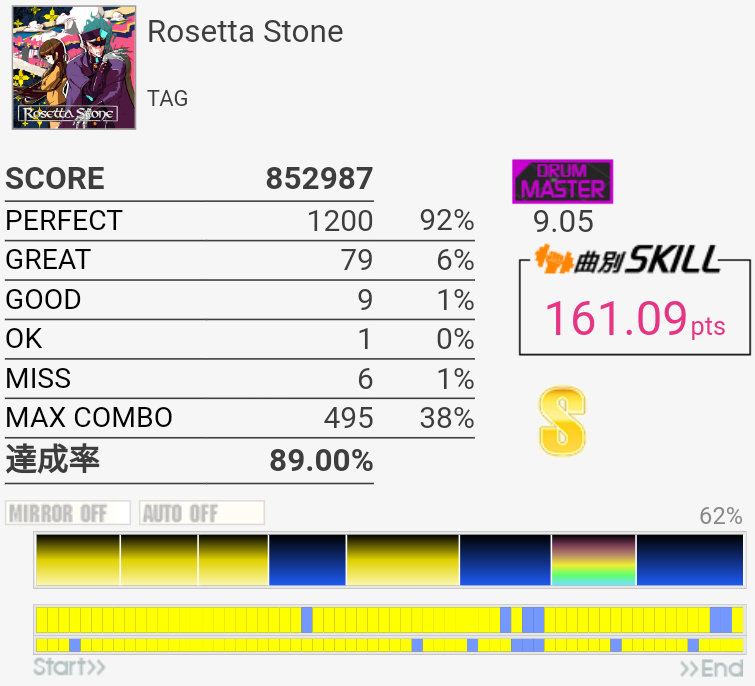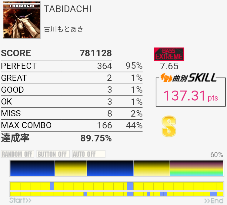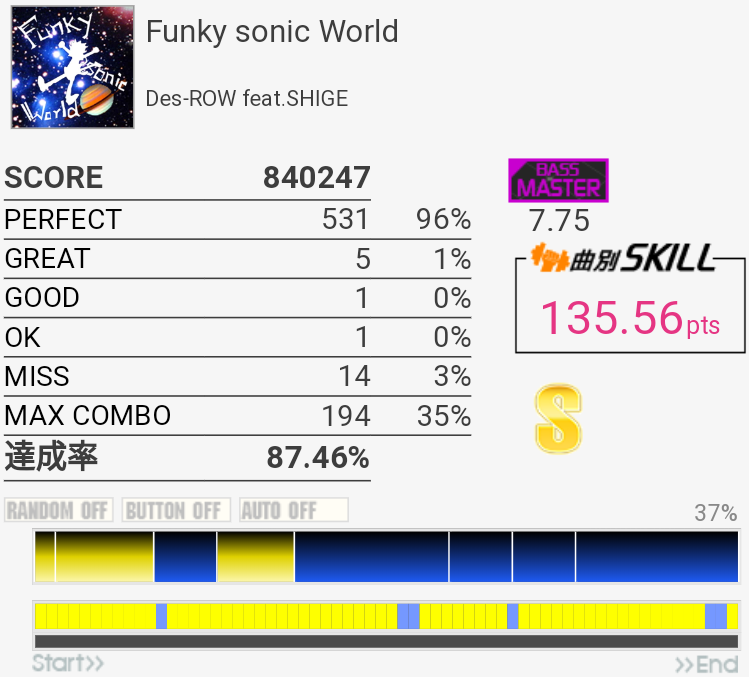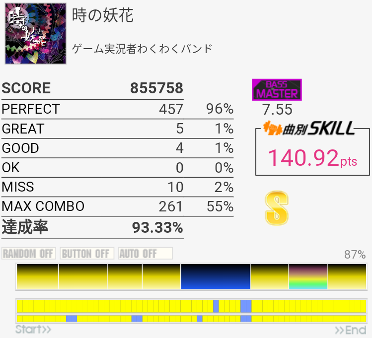 SS取得。入りのFTを左手で取るのは上手くいったけれどなんかMISSが出た。