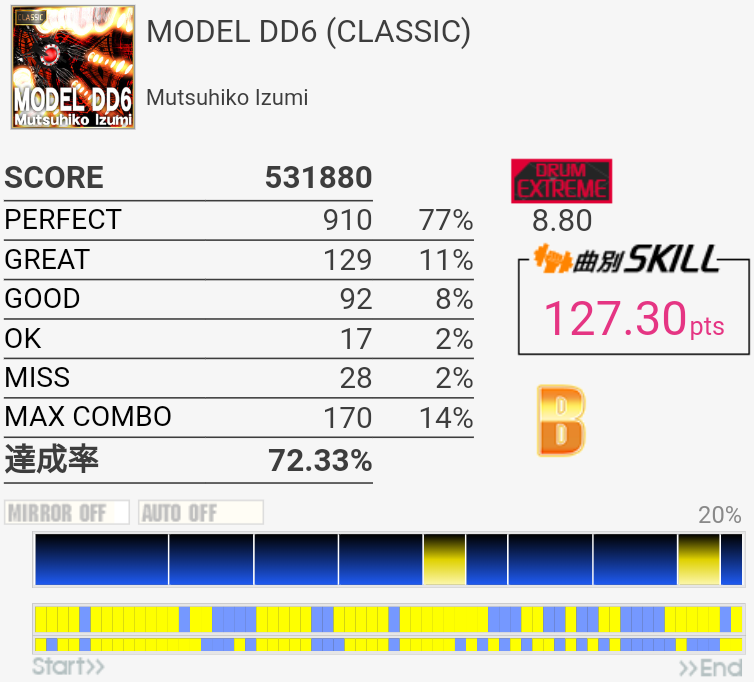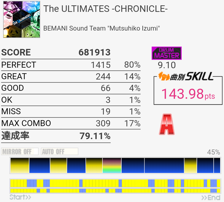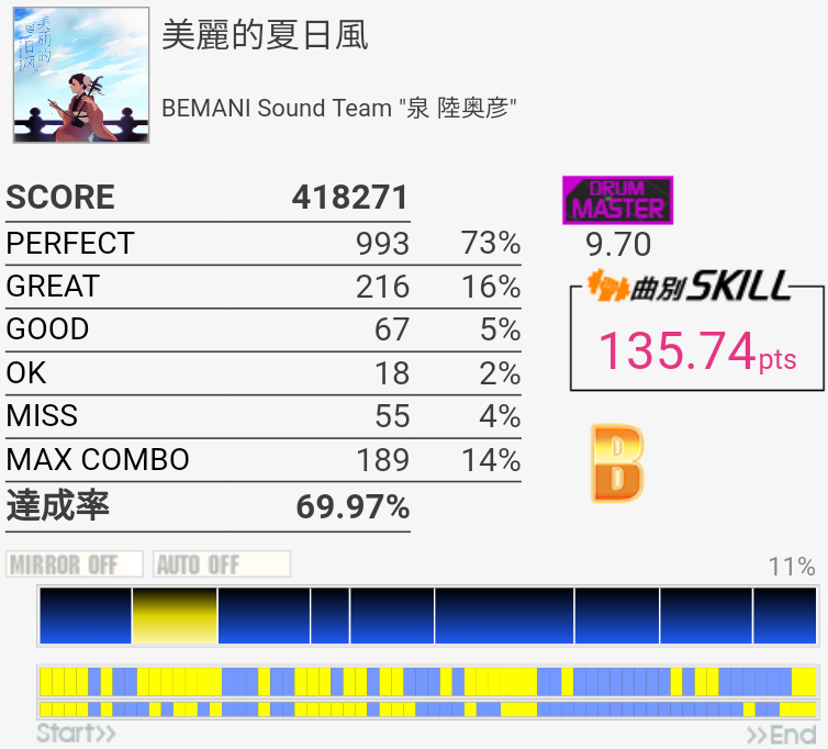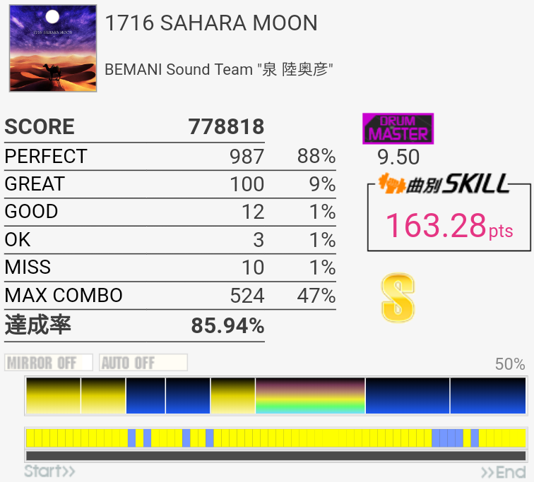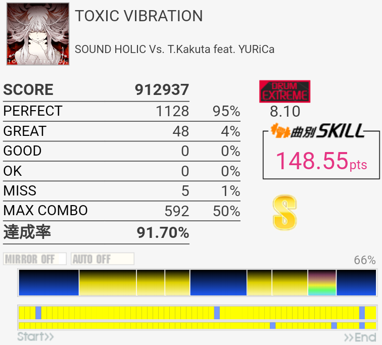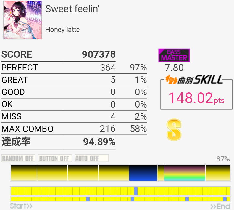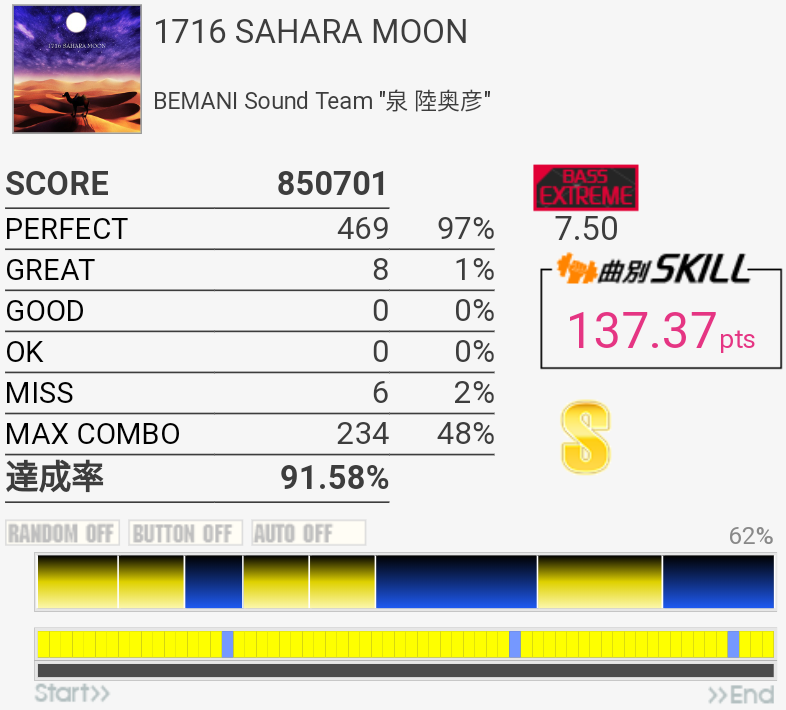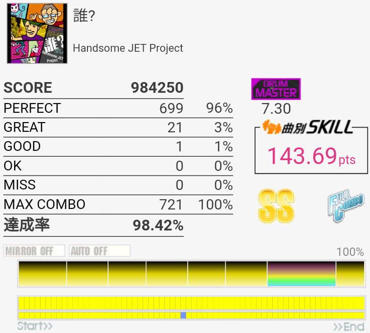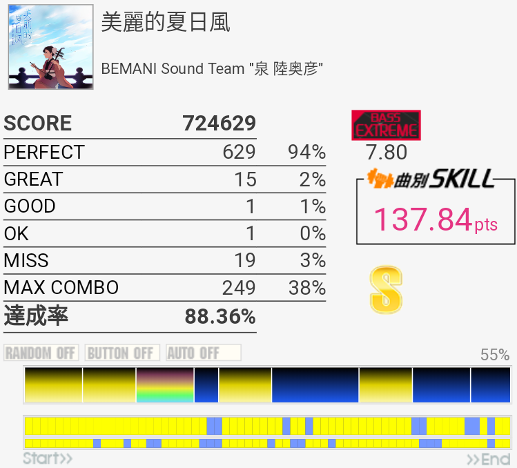 SS取得。入りのFTを左手で取るのは上手くいったけれどなんかMISSが出た。