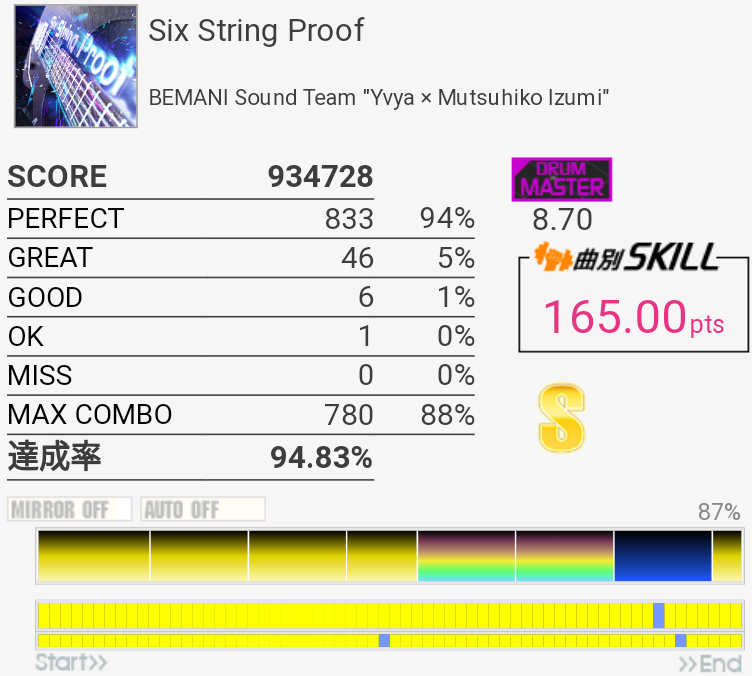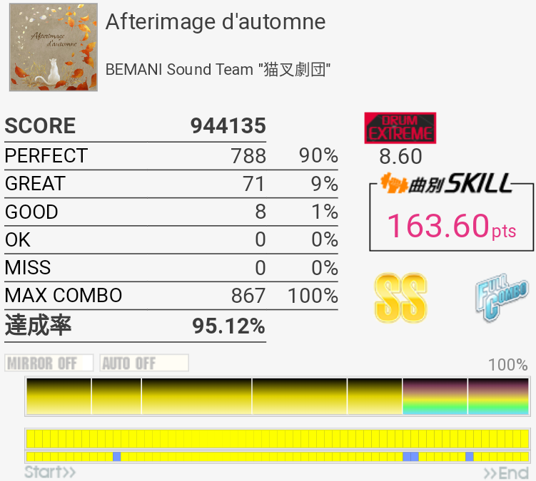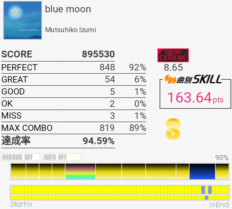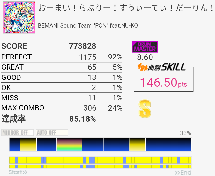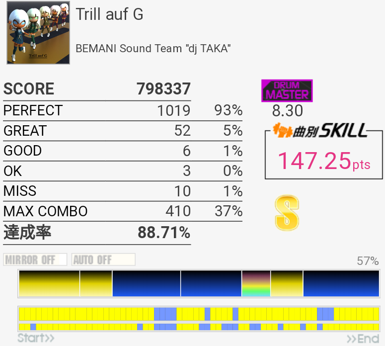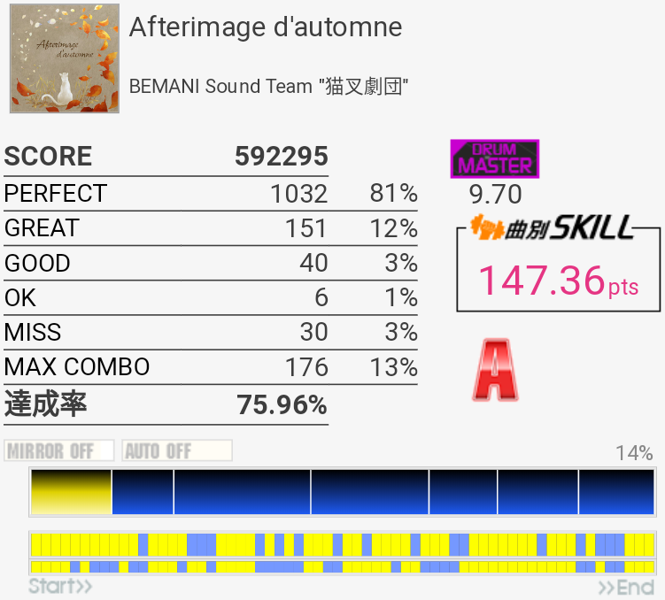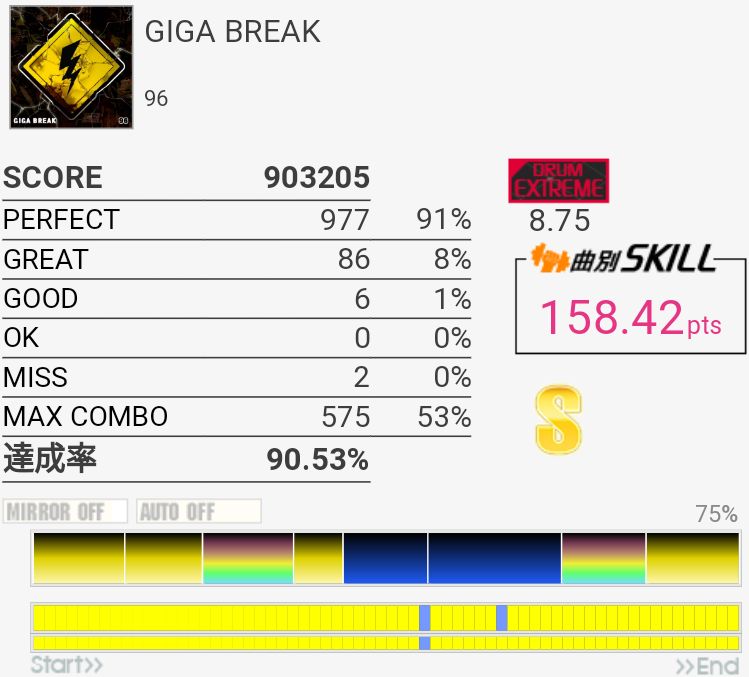 やっぱり最後の追い越しが叩けない。パフェ率……。