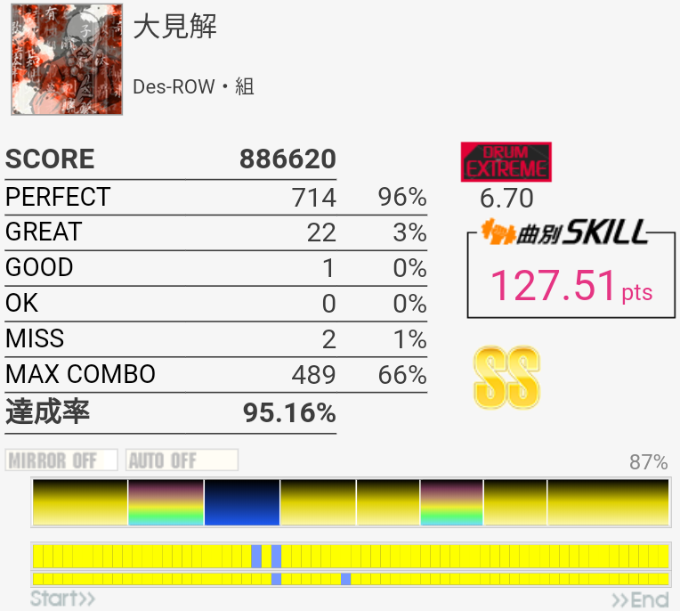 うんやっぱ難しいわ。つーかフレーズ少ないっすね。後半はちゃんと手順を確認しないと自分は取れそうにない。