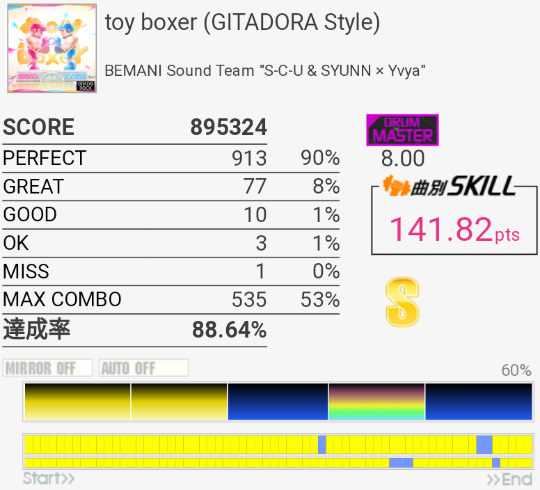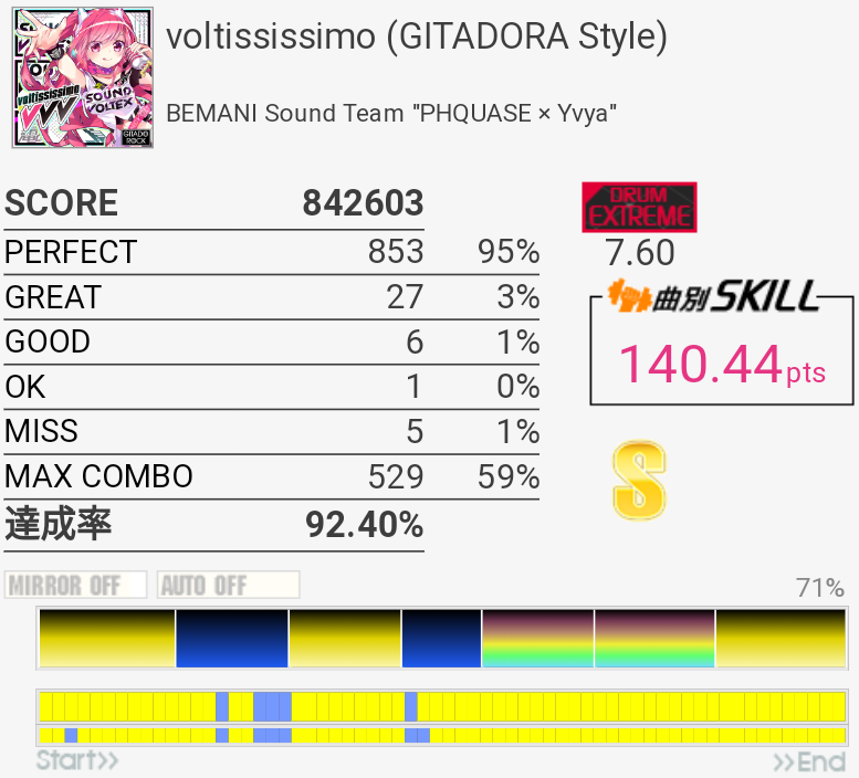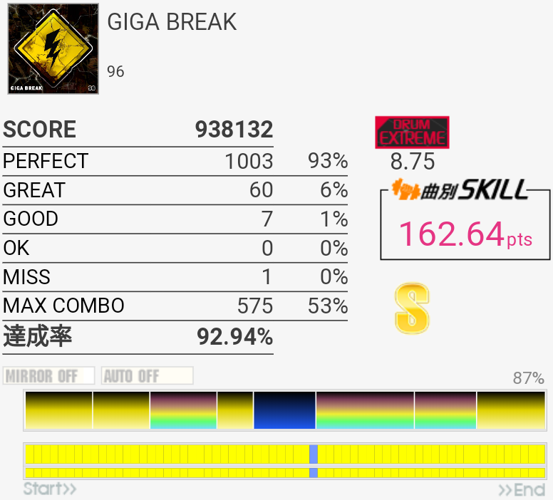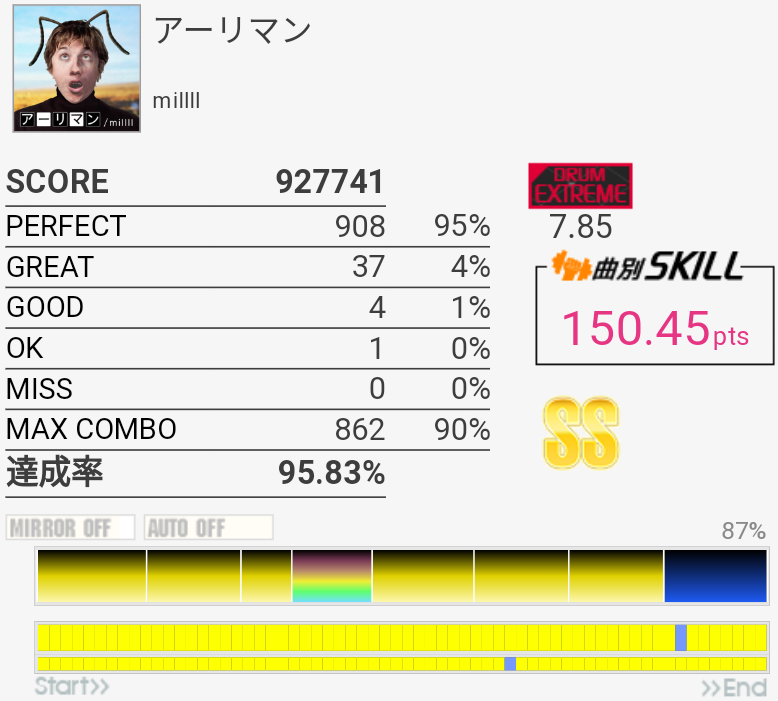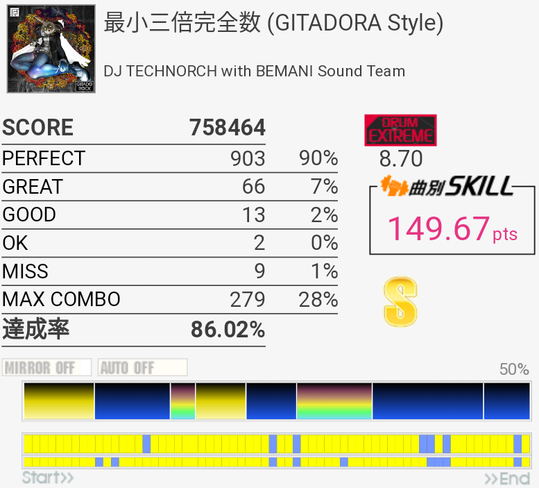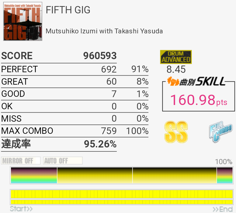 やっとSS乗せられた……3フレーズ目終わりのHTは全部GOODだった。あぶねえ。