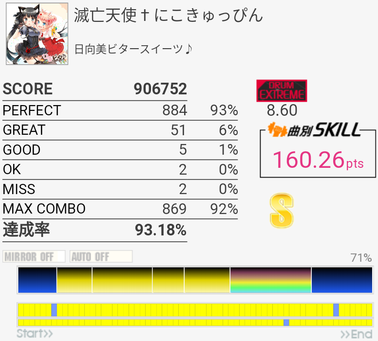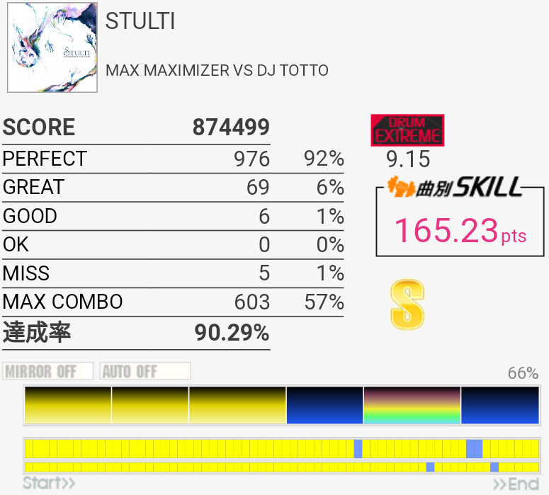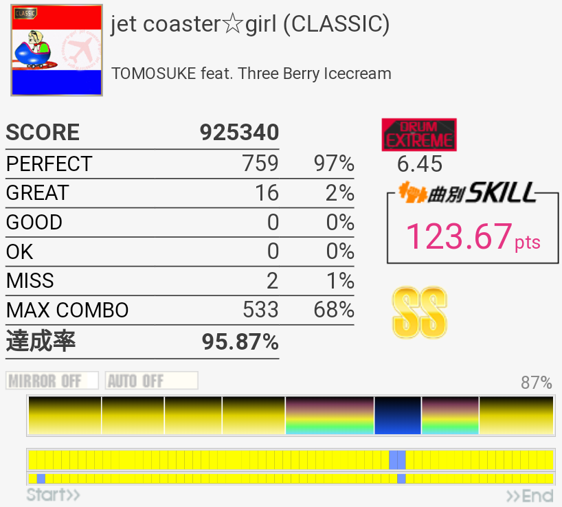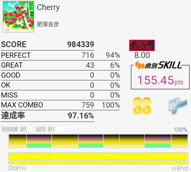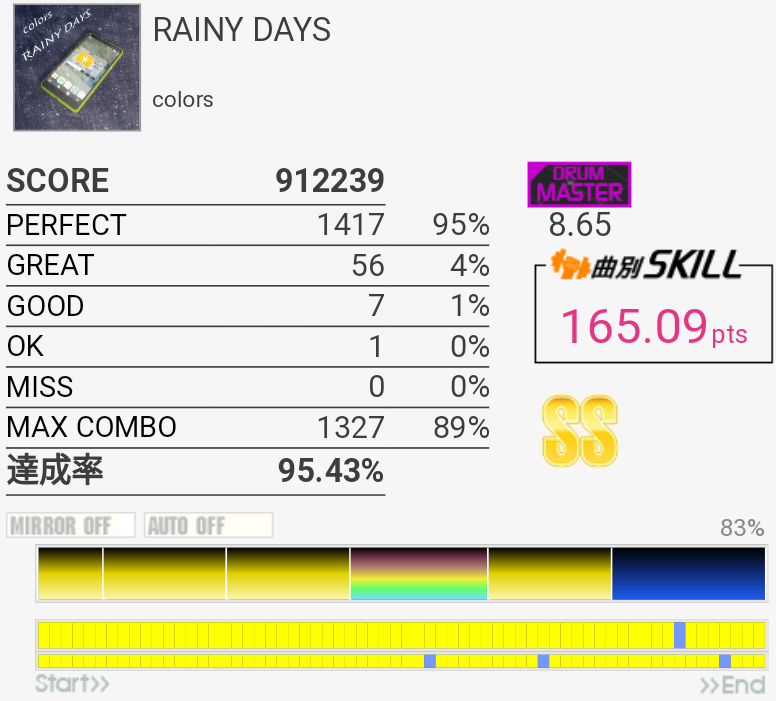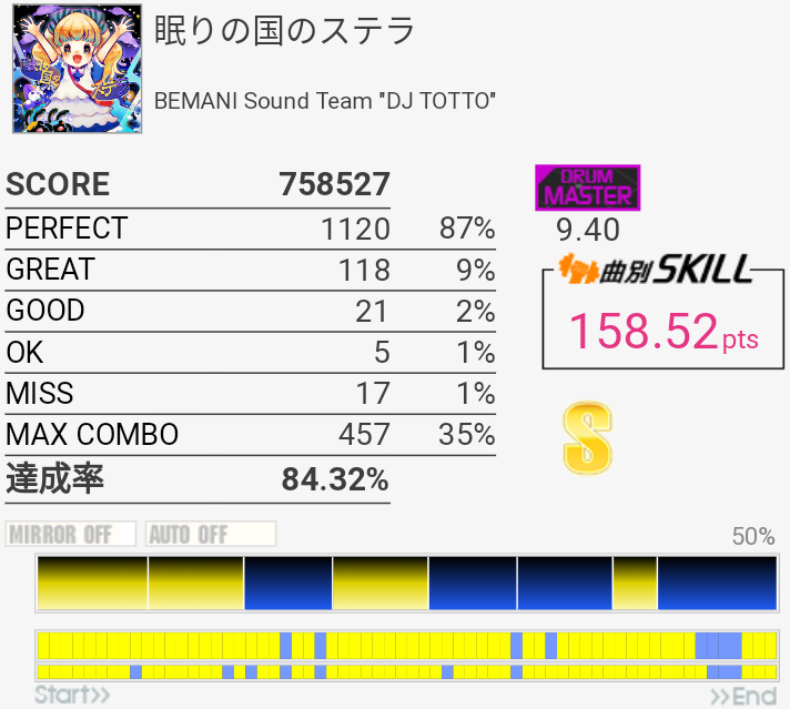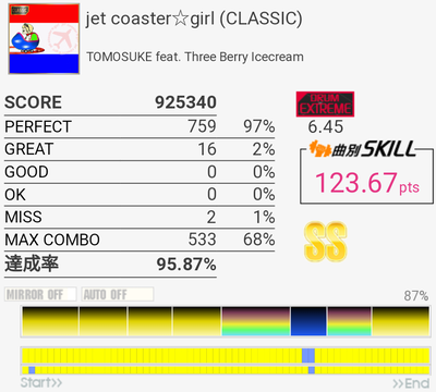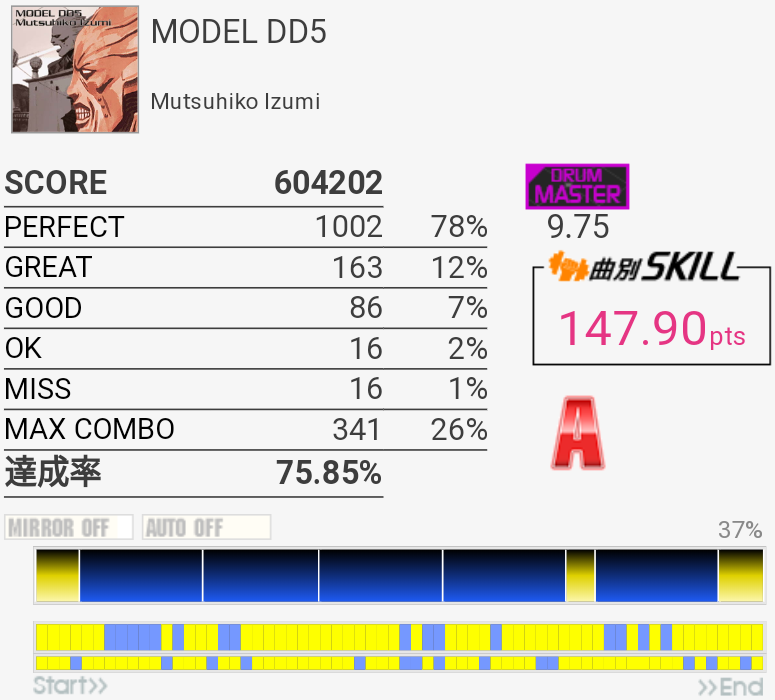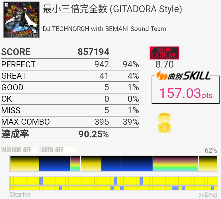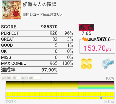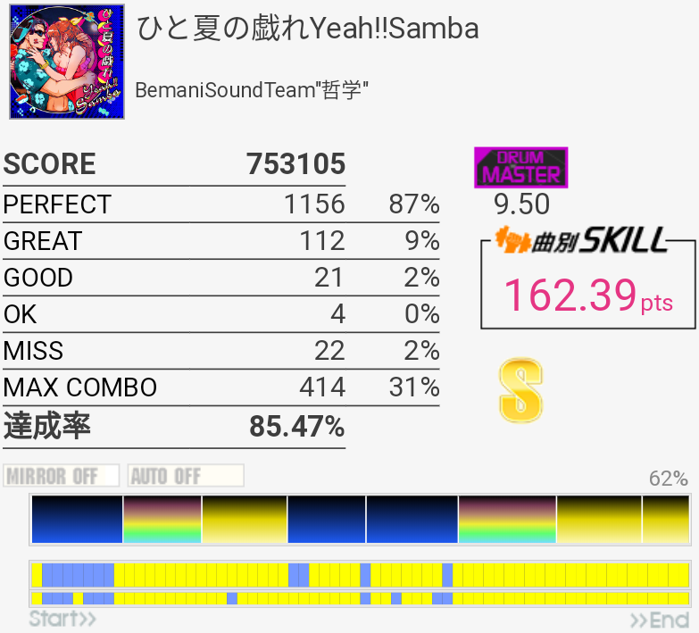 SS取得。6フレーズ目は咄嗟に叩けないから嫌い。