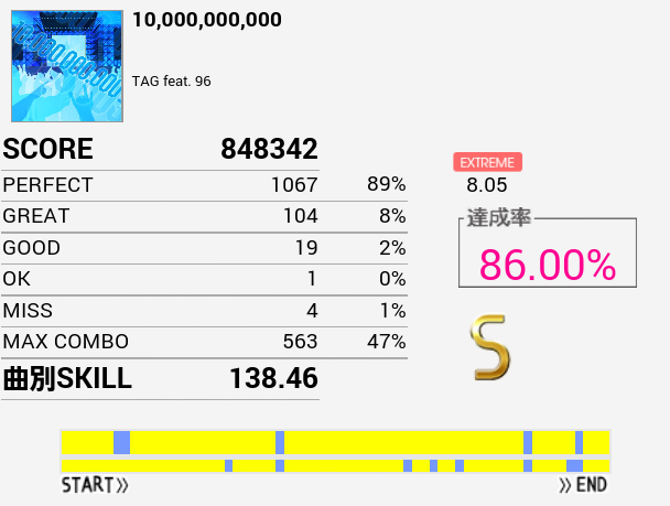 Aメロ~Bメロがそこそこ繋がってS取得。