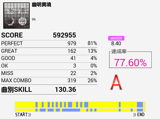 ほぼ刻みでパフェ率も出しやすいのだけれど、数箇所変な部分があってそこがどうにも。